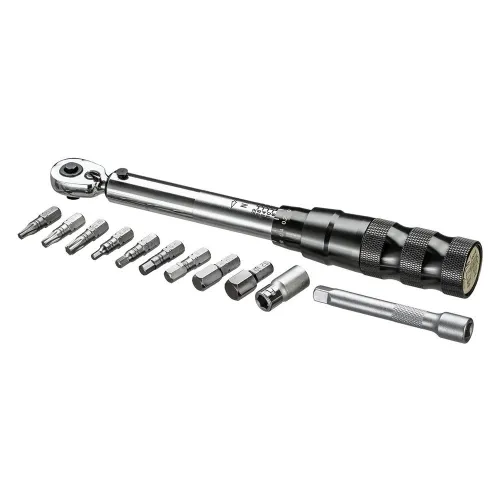 Produtos de precisão exigem ferramentas de precisão. Nosso torquímetro é projetado para facilitar a montagem e manutenção de componentes de bicicleta de alta qualidade (especialmente fibra de carbono). Basta definir a pressão de aperto desejada, e você pode apertar parafusos sem o risco de danificar o componente ou a cabeça do parafuso. O kit inclui um conjunto de bits, uma cabeça de extensão, instruções e um estojo rígido para proteger a ferramenta. É uma ferramenta essencial no arsenal de qualquer mecânico doméstico.