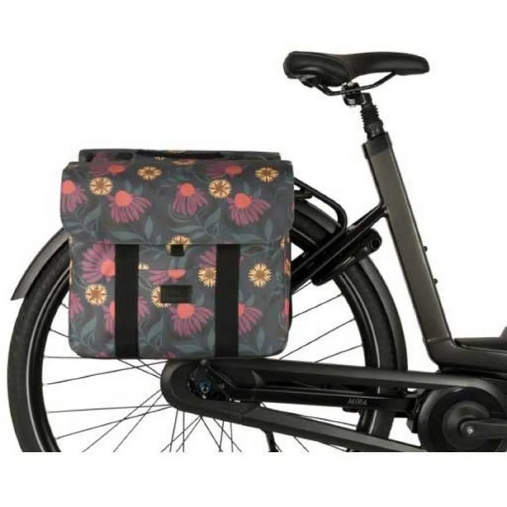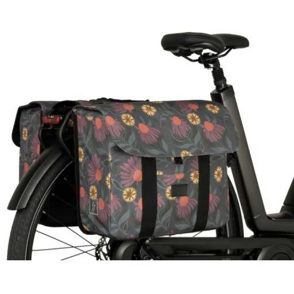 Med sin lekfulla grafik och rundade hörn är NYLA-dubbelväskan idealisk för dig som letar efter en snygg och mångsidig cykelväska som enkelt kan fästas på cykeln. Tillverkad av återvunnen polyester som en del av vårt RETHINK-program, det vattenavvisande tyget har försetts med reflekterande element för att förbättra synligheten. Regnskydd håller vädret ute och med den dubbla kardborre-/spännesförslutningen kan du vara säker på att dina ägodelar förblir torra och säkra inuti.