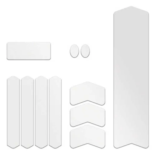 Denna innovativa ramskyddslösning är tillverkad av ett slitstarkt, högkvalitativt material som är både tåligt och flexibelt. Det anpassar sig sömlöst till din rams konturer och ger omfattande täckning utan att lägga till bulk eller störa din cykels prestanda. Den klara, icke-gulnande designen säkerställer att skyddet förblir praktiskt taget osynligt och bevarar din rams ursprungliga utseende och finish.