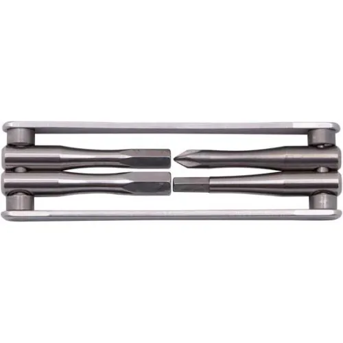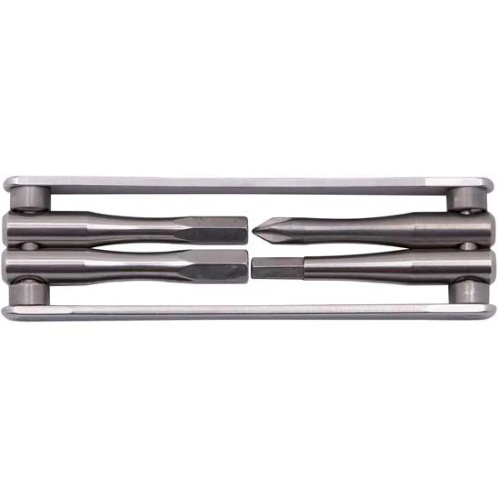 Liten men kraftfull ´´TFR Fold 4´´ från CONTEC är en kompakt multitång för användning på språng. Det är vad ´´Tool for Ride´´ med dimensioner på 90 x 25 mm och en vikt på 59 gram står för. De fyra funktionerna inkluderar 4 mm, 5 mm och 6 mm insexnycklar och en Philips skruvmejsel. För säkert arbete låses de enskilda verktygen vid 90° och vid 180°. Tillverkad av höghållfast och rostfritt rostfritt stål.