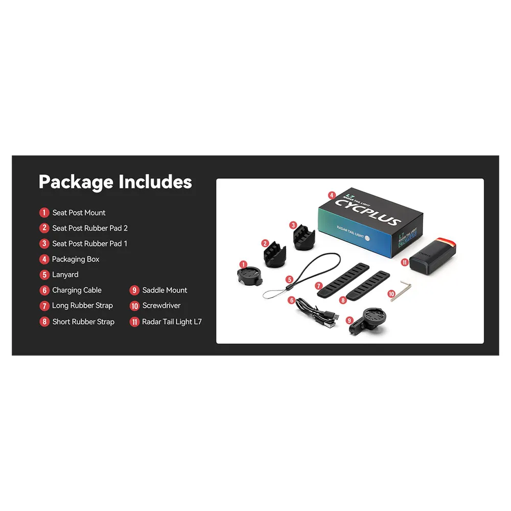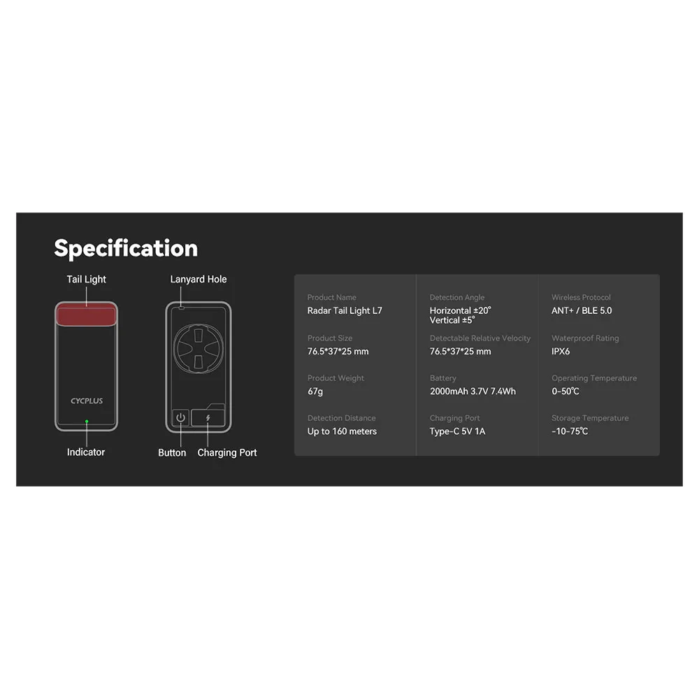 Produktbeskrivning för Cycplus L7 Radar Bakljus