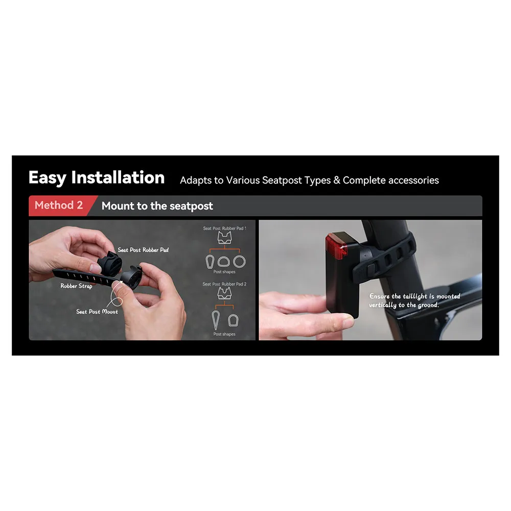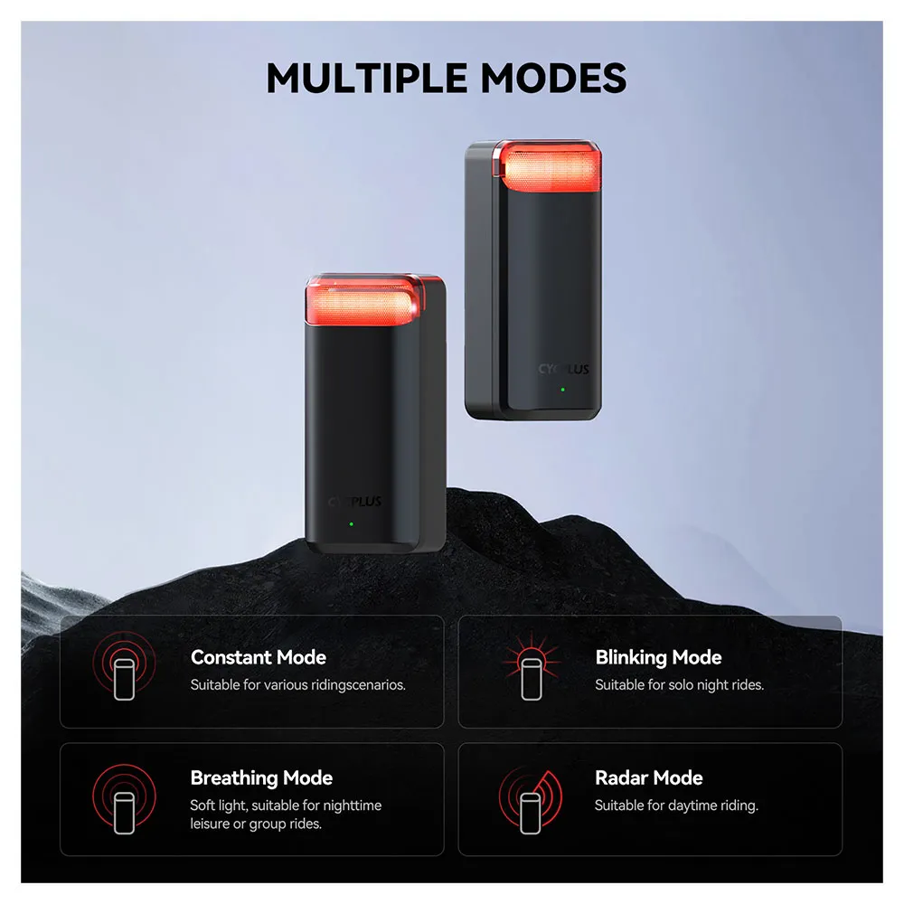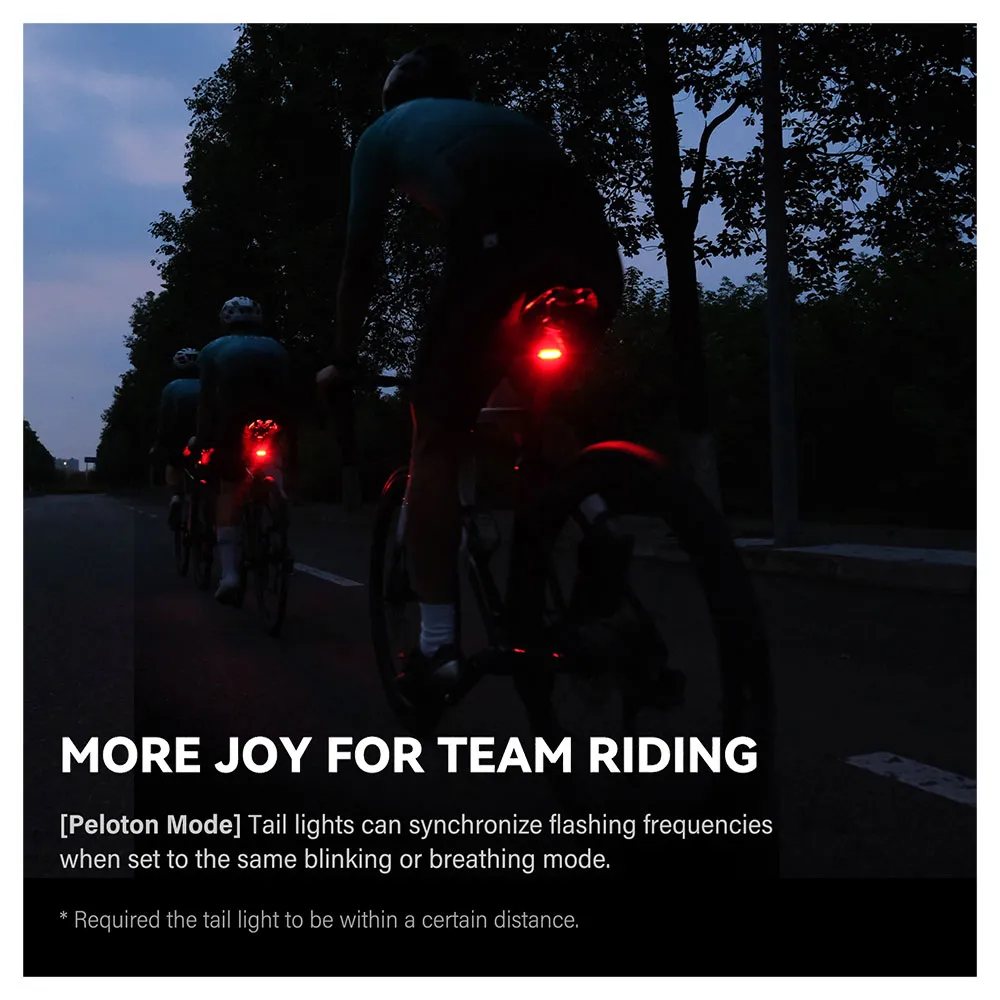 - Flera lägen: Välj mellan fast, blinkande, andnings- eller radarlägen, plus Peloton-läge för synkroniserade gruppritt.
