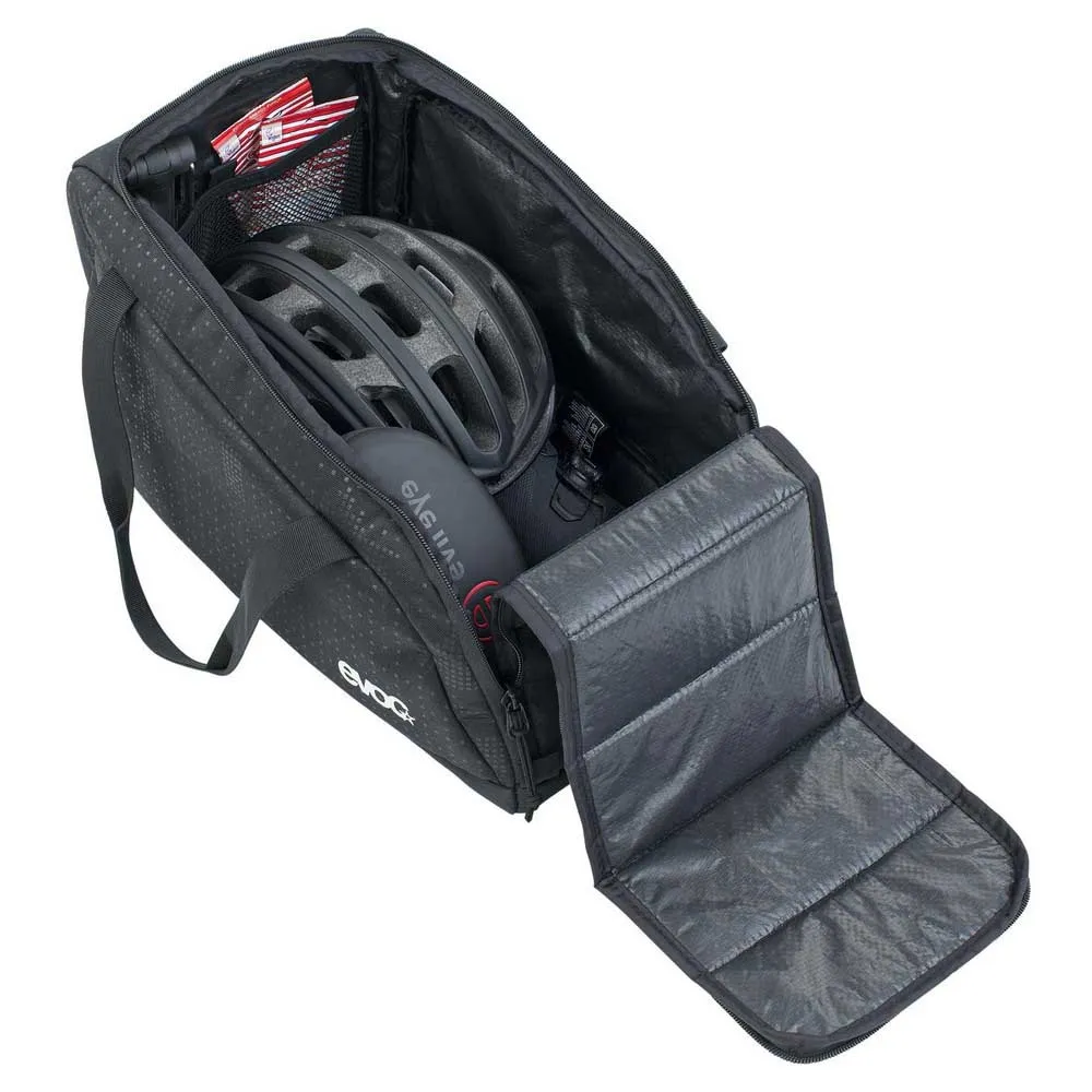 Den praktiska utrustningsväskan 20 förvarar en hjälm, skor eller annan utrustning kompakt på din resa.