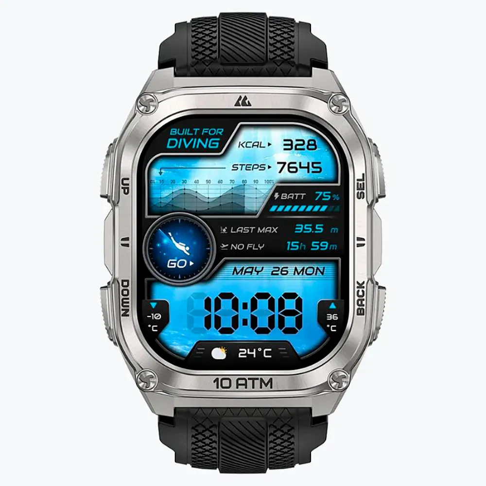 Det är en klocka designad för simning, snorkling eller djupdykning. Designad för att tåla 10 ATM och IP69K-certifiering, fungerar KOSPET TANK M4 som en mångsidig vattentät smartklocka, med tre dyklägen för att berika dina undervattensupplevelser.