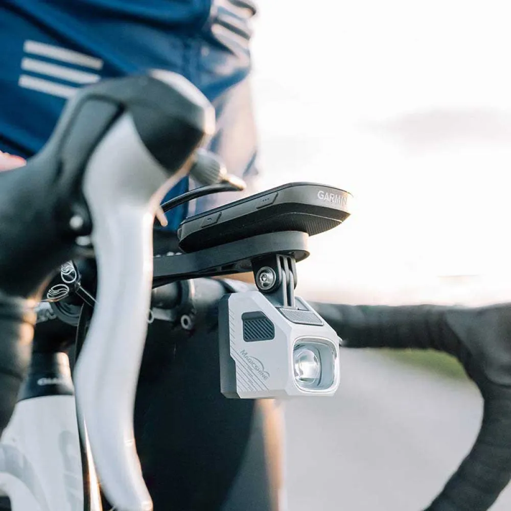 Lys upp din färd med MAGIC SHINE Evo 1100! Denna kompakta framlampa levererar kraftfulla 1100 lumen, perfekt för stadspendling och landsvägscykling. Dess precisa avskurna ljusstråle lyser upp vägen utan att blända andra. Det smarta underliggande fästet sparar utrymme på styret, medan den trådlösa fjärrkontrollen och app-anpassningen erbjuder total kontroll. Med en drifttid på 15.5 timmar, USB-C-laddning och en hållbar, IPX6 vattentät aluminiumkropp är Evo 1100 din pålitliga partner i alla väder, som säkerställer att du är säker och synlig på varje färd
