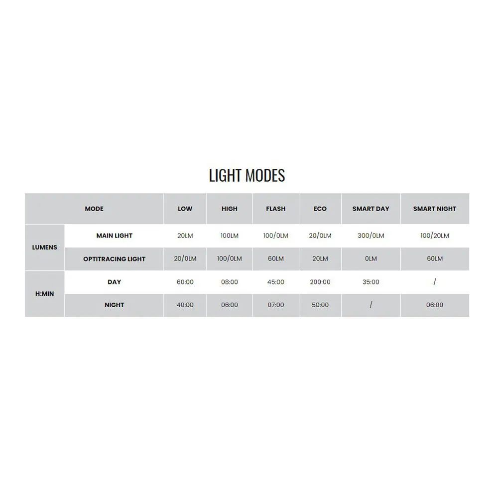 - Optitracing light 360º, projicerar ett rött ljus för att säkerställa fullständig synlighet.