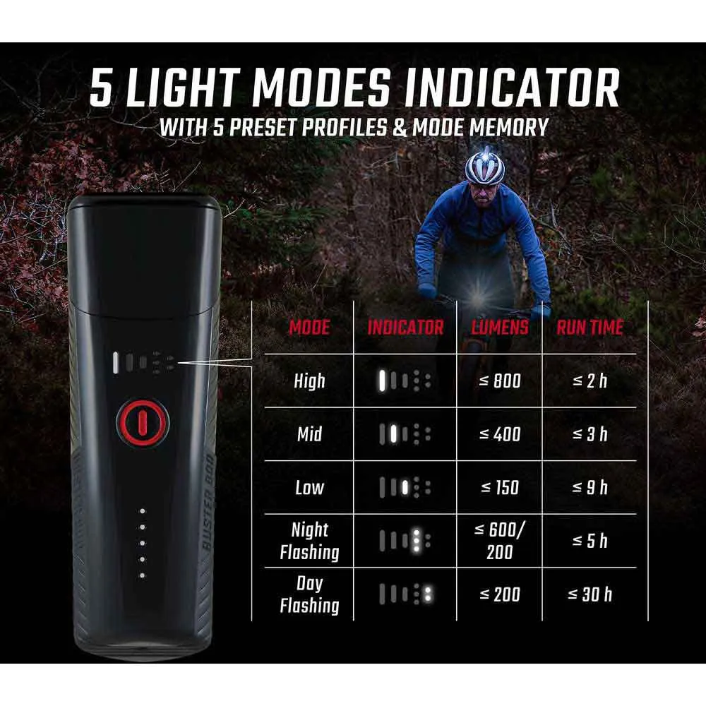 Buster 800 utmärker sig på mörk, tuff terräng och snäva MTB-spår.
