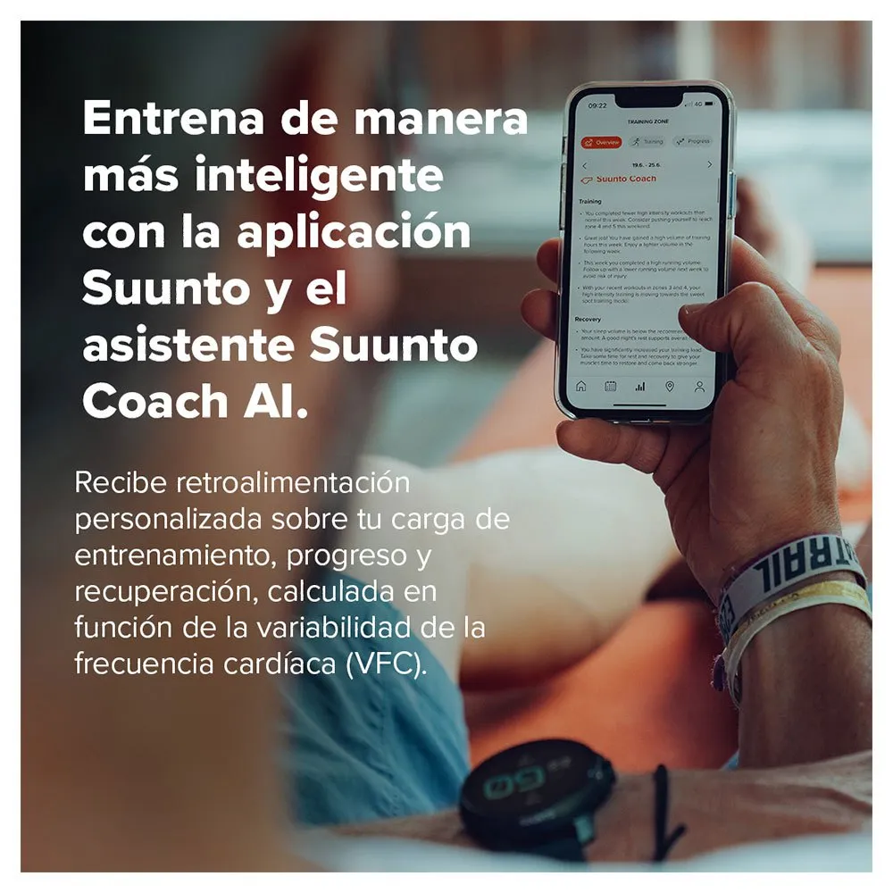 Med Suunto Race får du personlig feedback på din träningsbelastning, framsteg och återhämtning, beräknad baserat på hjärtfrekvensvariabilitet (HRV). Suunto Coach övervakar dina träningspass och ger råd för att hålla dig motiverad. Även med sin ljusa AMOLED-skärm kan du fortfarande njuta av den imponerande batteritiden för SUUNTO RACE: När du tränar kan batteriet hålla upp till 40 timmar med bästa dubbla band GNSS-spårning, medan klockan i vardagsläge kan hålla upp till 12 dagar.