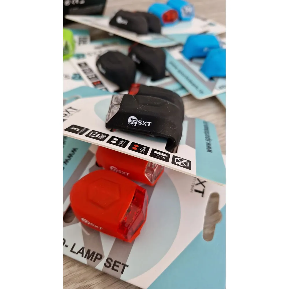 Detta set innehåller två LED-lampor, en vit för framsidan och en röd för baksidan, och är utrustad med CR2032-batterier, som ingår i förpackningen.