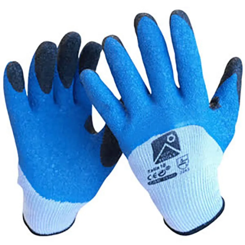 Den livlige blå og lyseblå farvekombination giver handsken et stilfuldt touch, samtidig med at den øger synlighed i udendørsmiljøer. Denne funktion er især nyttig, når man arbejder i svagt oplyste områder eller når man henter værktøj eller materialer op fra jorden.