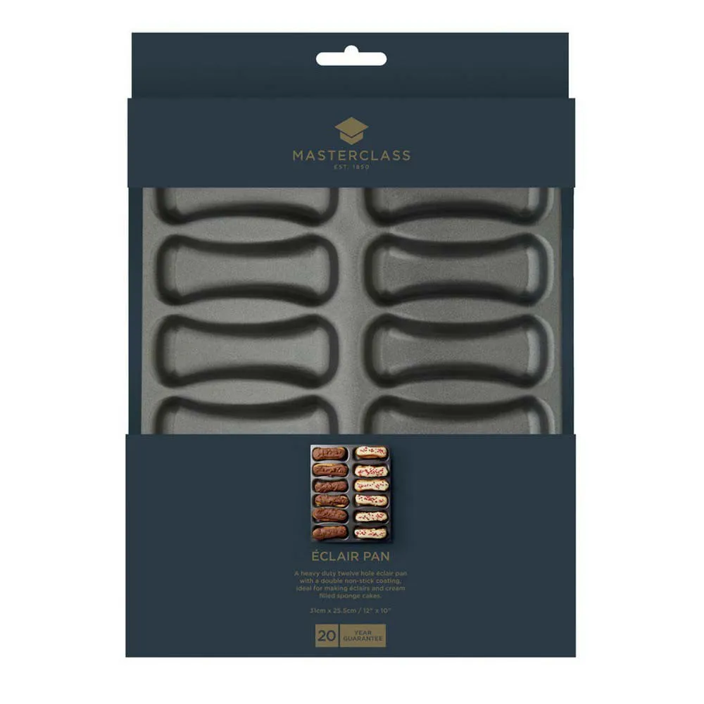 Nyd den perfekte bagning med MasterClass 12-huls non-stick Éclair bageplade. Denne pande er ideel til bagning af klassiske éclairs, og den er lavet af 1 mm tykt elektroplerede kulstofstål for maksimal styrke og holdbarhed. Pladen måler 31 x 25,5 cm (12” x 10”), med éclair-formede fordybninger, der hjælper dig med at bage perfekt formede éclairs med minimal besvær.