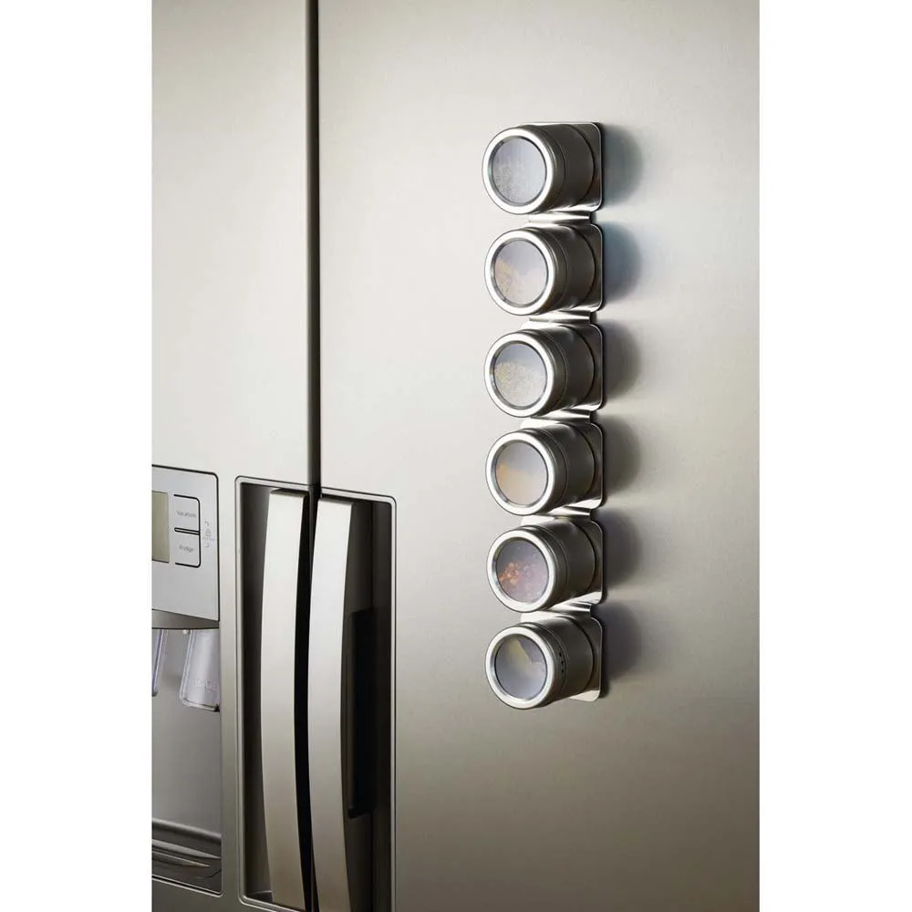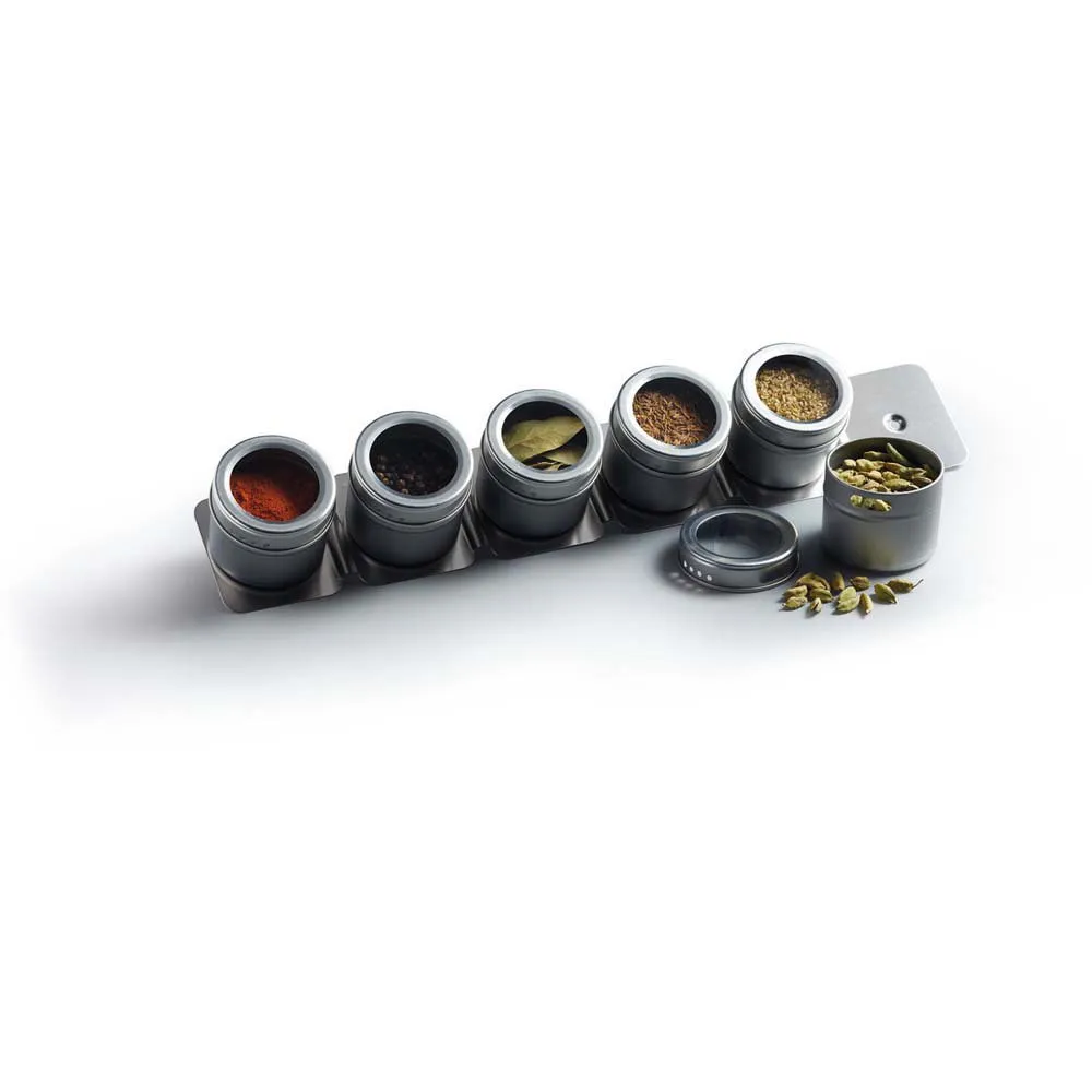 Inkluderer seks magnetiske krydderibøtter.