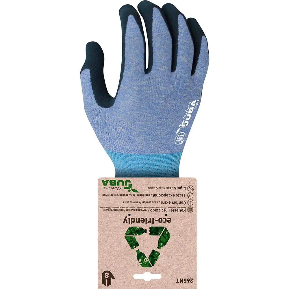 Juba Polyester / Spandex Arbeitshandschuh Gr. 6. Handschuh ´´juba nature´´ recyceltes Polyester mit sandfarbenem latexbeschichtetem Spandex auf der Handinnenfläche. nahtlos und mit einer außergewöhnlichen Note. 49 % des Polyesterträgers stammen aus recycelten PET-Flaschen, sodass seine Produktion die Abfallerzeugung reduziert und zur Entwicklung der Kreislaufwirtschaft beiträgt. Es bietet große Flexibilität und zusätzlichen Komfort und liegt perfekt in der Hand. Gute Abriebfestigkeit, längere Haltbarkeit. bietet einen soliden Halt in trockenen und nassen Umgebungen. mit Einzelblister für den Point of Sale. ´´Gebrauch, allgemeiner Gebrauch. Handhabung ohne Schnittgefahr, die Berührung erfordert. Montageketten. automotive.log. Installationen. leichte Wartung.