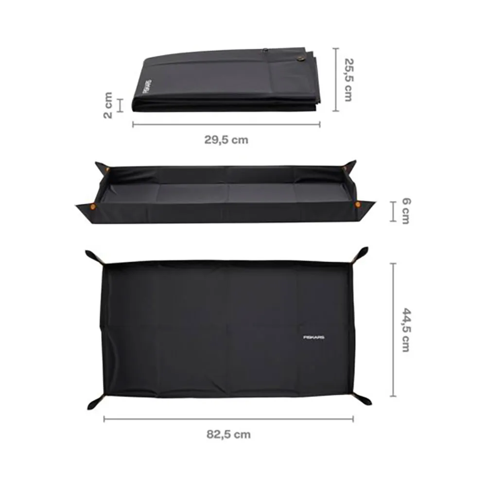 Die Fiskars Ablage ist vollgepackt mit Funktionen, die auf Funktionalität und Haltbarkeit ausgelegt sind. Sie verfügt über spezielle, passgenaue Halter und Schlitze, die speziell für die sichere Aufbewahrung einer Vielzahl von Fiskars Zubehörteilen entwickelt wurden, darunter Sprühdüsen und Verbinder. Ein geräumiges zentrales Fach bietet ausreichend Platz für sperrigere Gegenstände wie Gartenhandschuhe, kleine Handkultivatoren oder sogar eine Wasserflasche. Eines der praktischsten Merkmale ist das integrierte Entwässerungssystem, das Wasser durchlässt und Ihre Werkzeuge trocken hält und verhindert, dass sich nach Gebrauch oder einem plötzlichen Regenguss Wasser ansammelt. Als eine der funktionellsten Gartenablagen auf dem Markt lässt sie sich nahtlos am Fiskars Wasserrad XL einklicken und bietet eine stabile und zuverlässige Plattform, die sich mit Ihnen durch Ihren Garten bewegt.