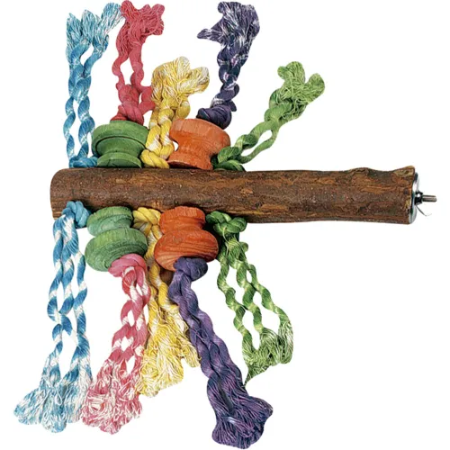 - Buntes Spielzeug mit Perlen, Stäben und Seilen zum Knabbern