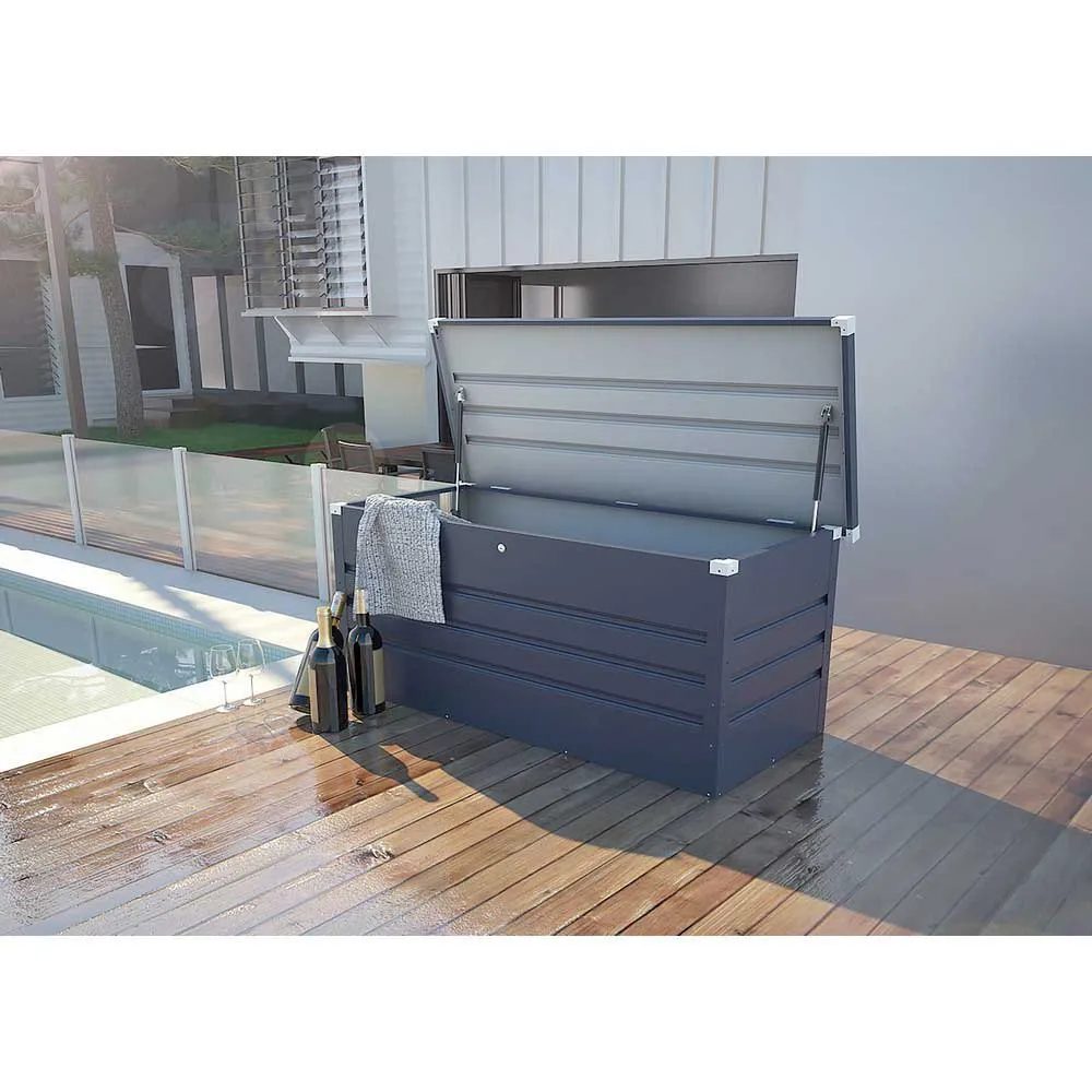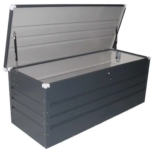 Der GARDIUN Arcana III Galvanisiertes Stahl-Außen-Stauraum-Deckbox in Anthrazit ist die ultimative Lösung für die Aufbewahrung Ihres Gartens und Ihrer Terrasse. Diese robuste Stahlbox ist korrosionsbeständig und sorgt dafür, dass sie den Elementen standhält und Ihre Habseligkeiten das ganze Jahr über schützt. Mit einem schlanken Design und einer Kapazität von 350 Litern bietet diese Deckbox ausreichend Stauraum für Ihre Gartengeräte, Kissen und mehr. Der Deckel ist mit Gasfedern ausgestattet, die ein einfaches Öffnen und Schließen ermöglichen, und die Box kann für zusätzliche Sicherheit abgeschlossen werden. Egal, ob Sie sperrige Gegenstände lagern oder Ihren Garten aufräumen möchten, die GARDIUN Arcana III ist die perfekte Wahl. Shoppen Sie jetzt und erleben Sie die Bequemlichkeit und Langlebigkeit dieser herausragenden Deckbox.