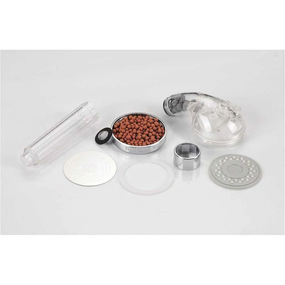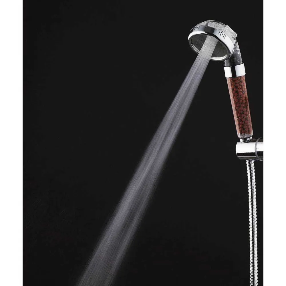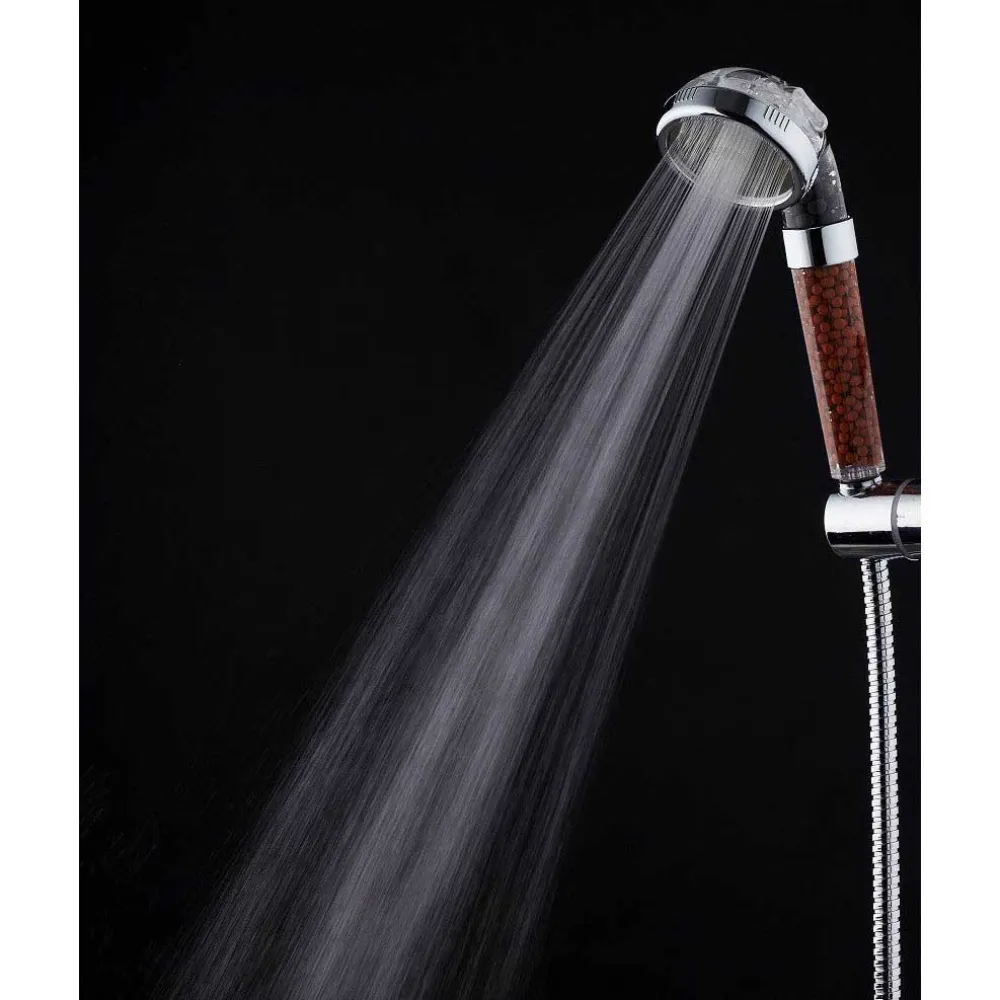 Darüber hinaus verfügt er über 2 Filterstufen mit Turmalin-Kugeln. Diese in den Griff eingebrachten Kugeln geben negative Ionen an das Wasser ab, die helfen, das Gleichgewicht des Körpers und den pH-Wert der Haut wiederherzustellen und ein angenehmes Wohlgefühl zu vermitteln. Es hilft, das lästige Gefühl von Müdigkeit und Stress zu beseitigen und gleichzeitig die Immunität der Haut zu stärken.