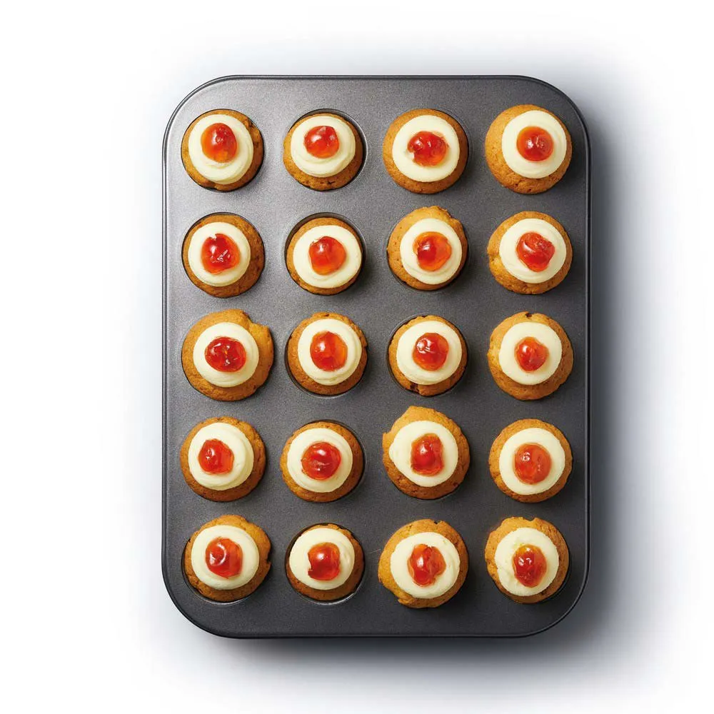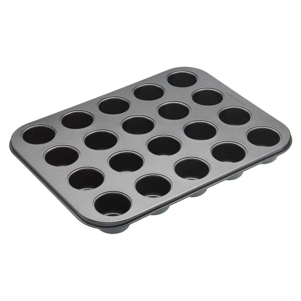 Von mundgerechten Soufflés und Mini-Muffins bis hin zu Käsekuchen und Mini-Schokoladentörtchen: Mit dieser vielseitigen MasterClass 20-Loch-Antihaft-Mini-Bissenform mit losen Böden können Sie leckere Häppchen backen, die fantastisch aussehen und schmecken. Sie ist aus hochwertigem Kohlenstoffstahl gefertigt und mit einer doppelten Antihaftbeschichtung versehen, sodass sie jedes Mal hervorragende Ergebnisse liefert und für viele Jahre ausgelegt ist. Tatsächlich ist diese Mini-Bissenform von MasterClass mit einer 20-jährigen Garantie und einer 5-jährigen Antihaftgarantie ausgestattet. Diese Kuchenbackform hat die Maße 35 x 27 cm (10,5 x 14 Zoll). Jedes Loch hat gerade Seiten und misst 4,5 cm (2 Zoll) breit und 3 cm (1 Zoll) tief, ideal zum Backen einer leckeren Auswahl an Leckereien.