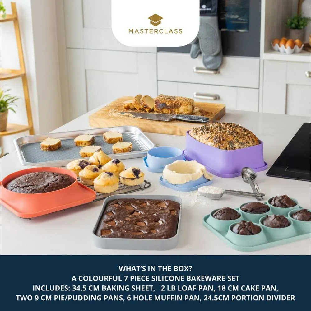 Lernen Sie das MasterClass Super Silikon-Backformen-Set kennen, Ihren ultimativen Begleiter für all Ihre Backvorhaben. Dieses Set besteht aus hochwertigem, ungiftigem Silikon und bietet Ihnen alles, was Sie für die Zubereitung köstlicher Leckereien benötigen, wobei Sicherheit und Komfort im Vordergrund stehen. Dies ist ein unverzichtbares Werkzeugset für die Herstellung köstlicher Backwaren. Dieses vielseitige 7-teilige Set aus hochwertigem, ungiftigem Silikon ist für jeden Backbegeisterten geeignet und sorgt für Sicherheit und Komfort in Ihrer Küche.