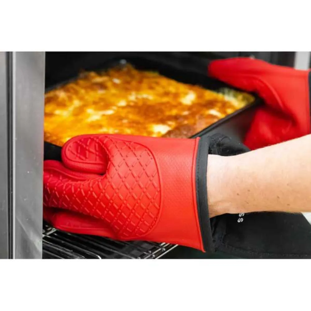 Mit seinem extra langen Ärmel und dem nahtlosen Silikongriff können Sie mit diesem MasterClass Seamless Silicone Double Oven Glove heiße Pfannen und Bleche sicher und bequem greifen, ohne sich zu verbrennen.