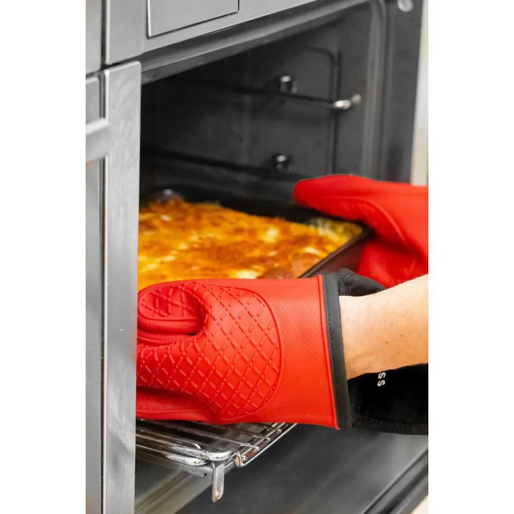 Der flexible Silikongriff dieses Ofenhandschuhs ist auch wasserbeständig, was bedeutet, dass er Ihre Hände vor heißen Dampf oder Flüssigkeitsverbrennungen schützt.