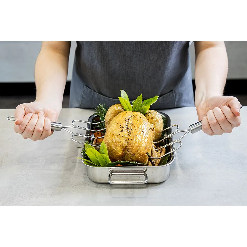 Das ergonomische Design der MASTERCLASS MCSSFORK Heber bietet einen komfortablen und sicheren Griff, auch beim Umgang mit schweren oder sperrigen Lebensmitteln. Die ausgewogene Gewichtsverteilung minimiert die Belastung von Handgelenk und Hand und ermöglicht eine längere Nutzung ohne Ermüdung. Die durchdacht gestalteten Griffe bieten einen sicheren und bequemen Halt und gewährleisten eine präzise Kontrolle und müheloses Manövrieren.