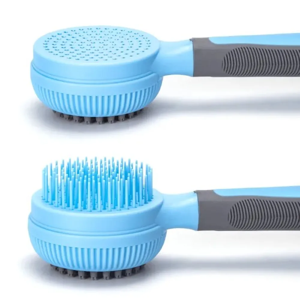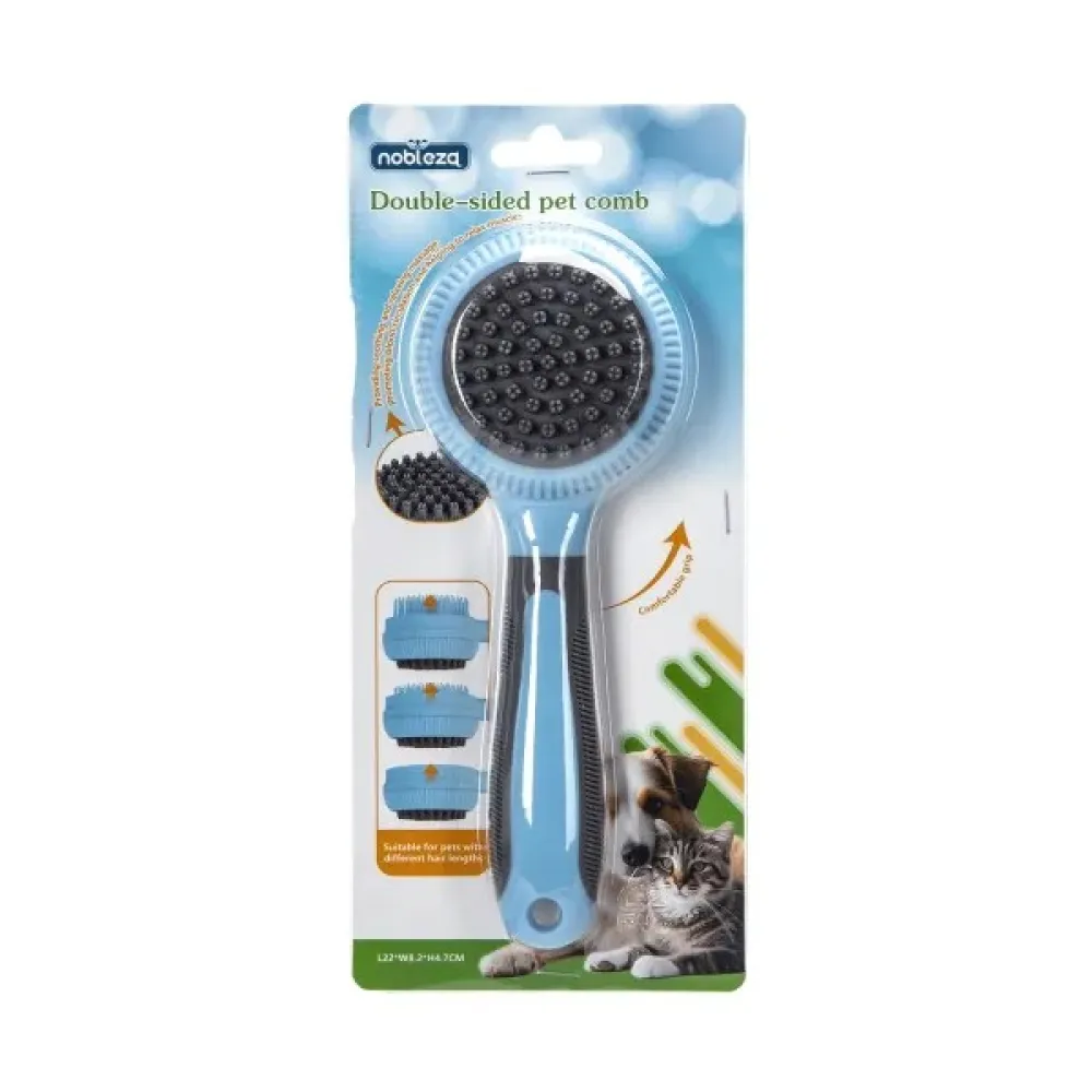 Der feinzahnige Nadelteil kann gedreht werden, um die Länge der Kammzähne anzupassen, geeignet für Haustiere mit unterschiedlicher Haarlänge. Der Massagekamm-Nadelteil hat vier weiche Gummibürstenköpfe, die eine beruhigende und entspannende Massage bieten, die Durchblutung fördern und helfen, die Muskeln zu entspannen. Der Griff ist mit TPR umwickelt und bietet einen komfortablen Halt.