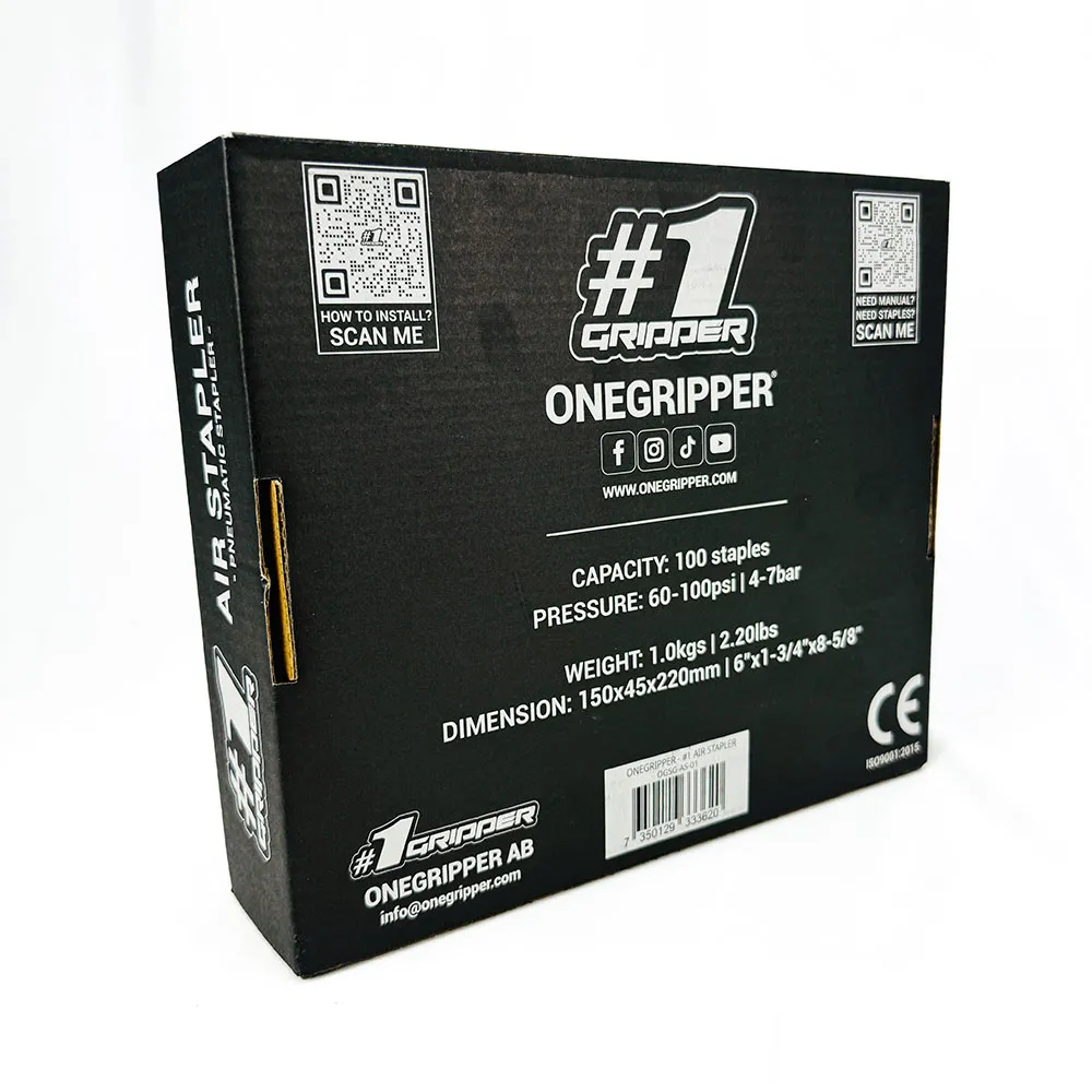 Wir präsentieren den ONEGRIPPER Drucklufttacker – das ultimative Werkzeug für die mühelose Sitzbezugmontage. Dieser hochwertige Tacker wurde mit Präzision entwickelt und auf Langlebigkeit ausgelegt. Er verfügt über einen griffigen Griff für maximale Kontrolle und Komfort. Er wird mit 4000 langlebigen 8mm (5/16) Klammern geliefert und ist sofort einsatzbereit für Dutzende von Sitzprojekten.