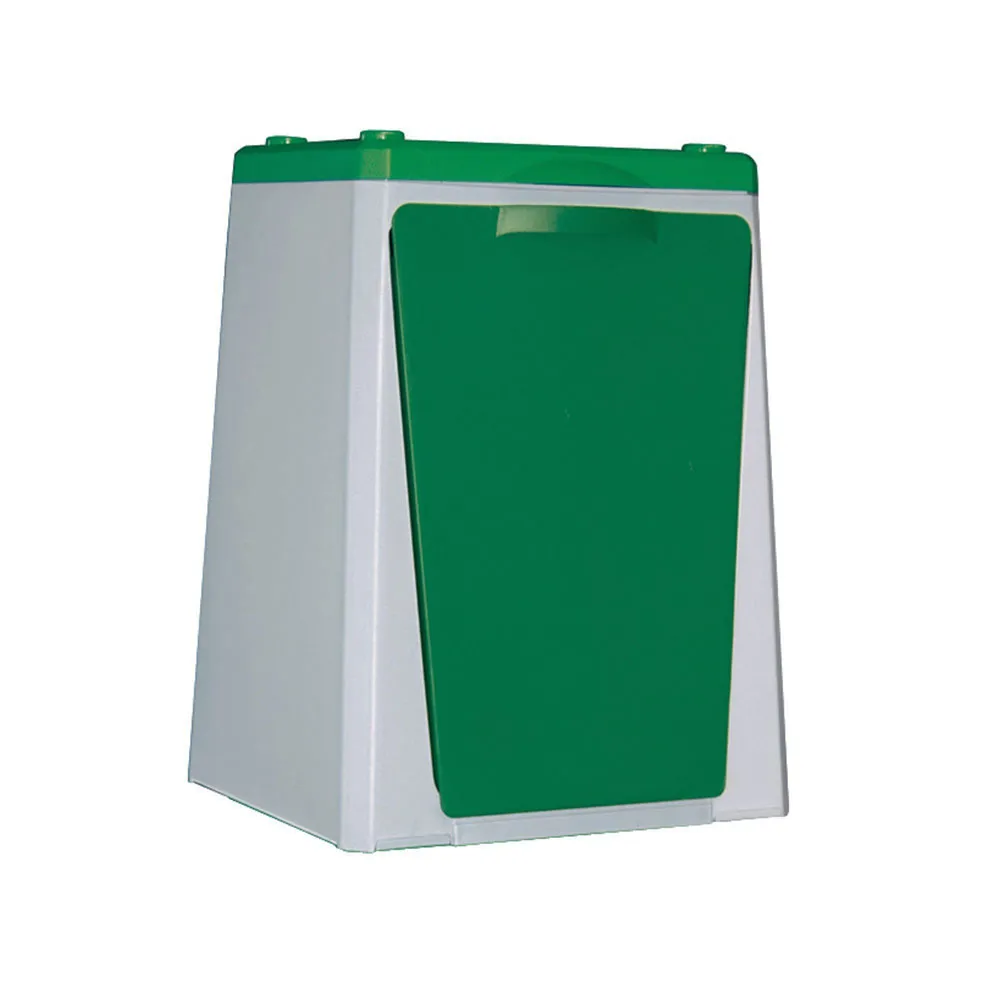 Dies ist ein stapelbarer und modularer Mülleimer mit optimalen Abmessungen für das Recycling.
