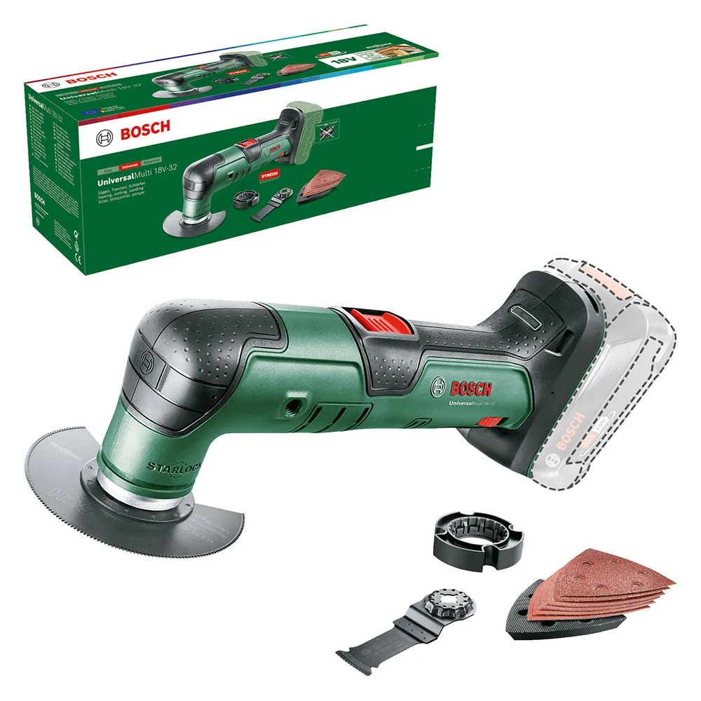The versatile UniversalMulti 18V-32 is the perfect tool for multifunctional DIY jobs such as cutting, sanding, sawing, etc.