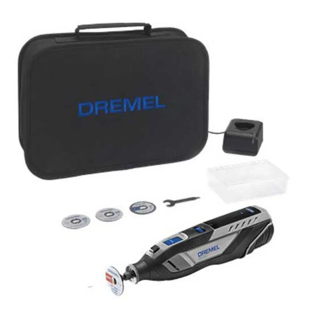 - Introducing the Dremel 8250-5 Multi-Tool kit, equipped with 5 essential accessories to kickstart your projects. Included are 4 EZ SpeedClic cutting wheels along with the EZ SpeedClic mandrel, enabling up to 6x faster accessory changes for seamless workflow. Keep your tool and Dremel accessories organized with the provided storage bag. Plus, with the quick start guide and accessory information sheet, you´ll be all set for a perfect experience with your new Dremel 8250 Multi-Tool.