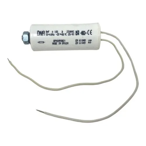 Capacitor 9 microF.Capacitor for fluorescent and discharge screw fixing M8 (including nut and washers) and 200 mm cable.