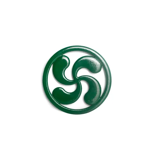 - Decorative and functional trivet shaped like a lauburu, a traditional Basque symbol.