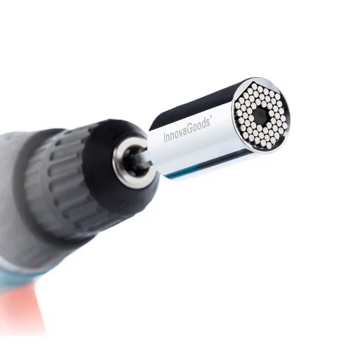 Universal Socket With Uniscrew Innovagoods Accessories. An Innovative And Versatile Wrench With Accessories That Allows The Easily Screwing And Unscrewing Of Any Type Of Nut, Screw, Screw, Shole, Etc. It Adapts To Any Size And Shape Within Its Dimensions, So It Is Suitable For Screws Between 7-19 Mm. Thanks To The Included Universal Connector Accessory, It Is Easily Inserted Into Any Ratchet, Drill Or Electric Or Manual Screwdriver With Interchangeable Bit Socket. Includes An Extender Accessory To Lengthen Its Reach And An Elbow Accessory With 105° Incline For Areas With Difficult Access Or With Little Space. In Addition, It Is Made Of High-Quality And Resistance Metals And Is Very Easy To Use, Transport And Store. This Original And Practical Compact And Lightweight Tool Avoids Having To Carry Heavy Briefcase Or Box With A Multitude Of Sockets For Different Sizes And Types Of Bolts.