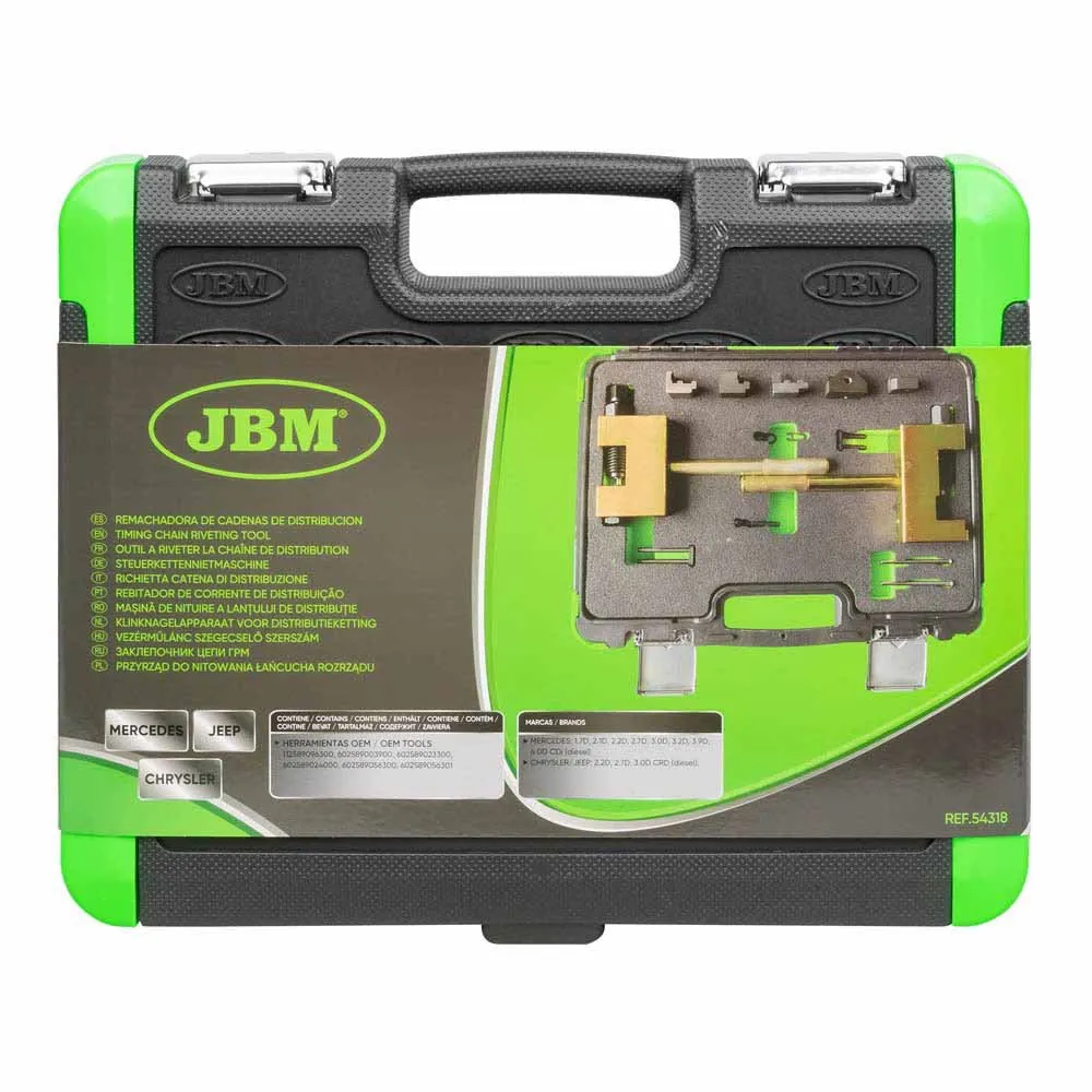 Achieve flawless and efficient timing chain service with the professional-grade JBM Distribution Chain Riveter. Designed specifically for the dedicated automotive technician and modern workshop, this essential tool streamlines the complex process of both breaking old timing chains and precisely riveting new ones. By enabling you to perform this critical task directly on the engine, it masterfully eliminates the need for extensive and time-consuming disassembly of the timing case. This innovative approach saves valuable workshop hours, reduces labor costs, and minimizes the risk of collateral damage, making it a benchmark for accuracy and reliability in modern engine repair.