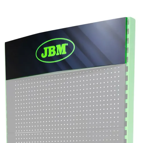 Elevate your professional workspace and create an immediate impression of quality and organization with the JBM Header for Tools Display Stand. As the crowning component of your JBM tool organization system, this header is meticulously designed to provide the ultimate finishing touch, transforming a standard tool rack into a professional, branded showcase. It serves as a clear and powerful signpost, instantly identifying your collection of high-performance tools and accessories from the renowned J.B.M range.