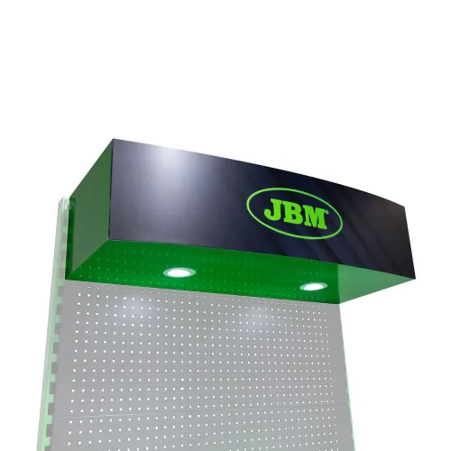 The JBM Light Header is more than just a light source; it´s a statement of professionalism. By prominently featuring the respected JBM branding, it instantly communicates a commitment to quality and creates a cohesive, brand-aligned appearance for your entire tool wall. It is the key to unifying your modular setup, seamlessly integrating with the JBM range of professional tool display shelves and cabinets. This header is meticulously designed to mount securely on top of your existing JBM modules, providing a clean, finished look that turns a simple set of shelves into a complete, impressive storage and display tower. Whether you are outfitting a state-of-the-art automotive workshop, a high-traffic hardware store, or a dedicated personal garage, this light header provides the ultimate finishing touch, signaling a workspace that is organized, efficient, and professional to the core.