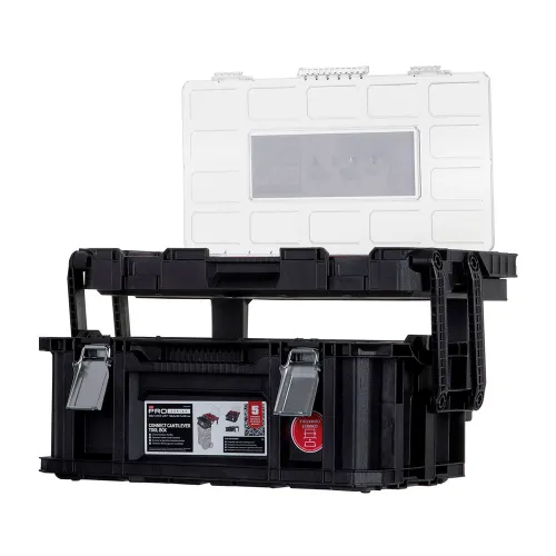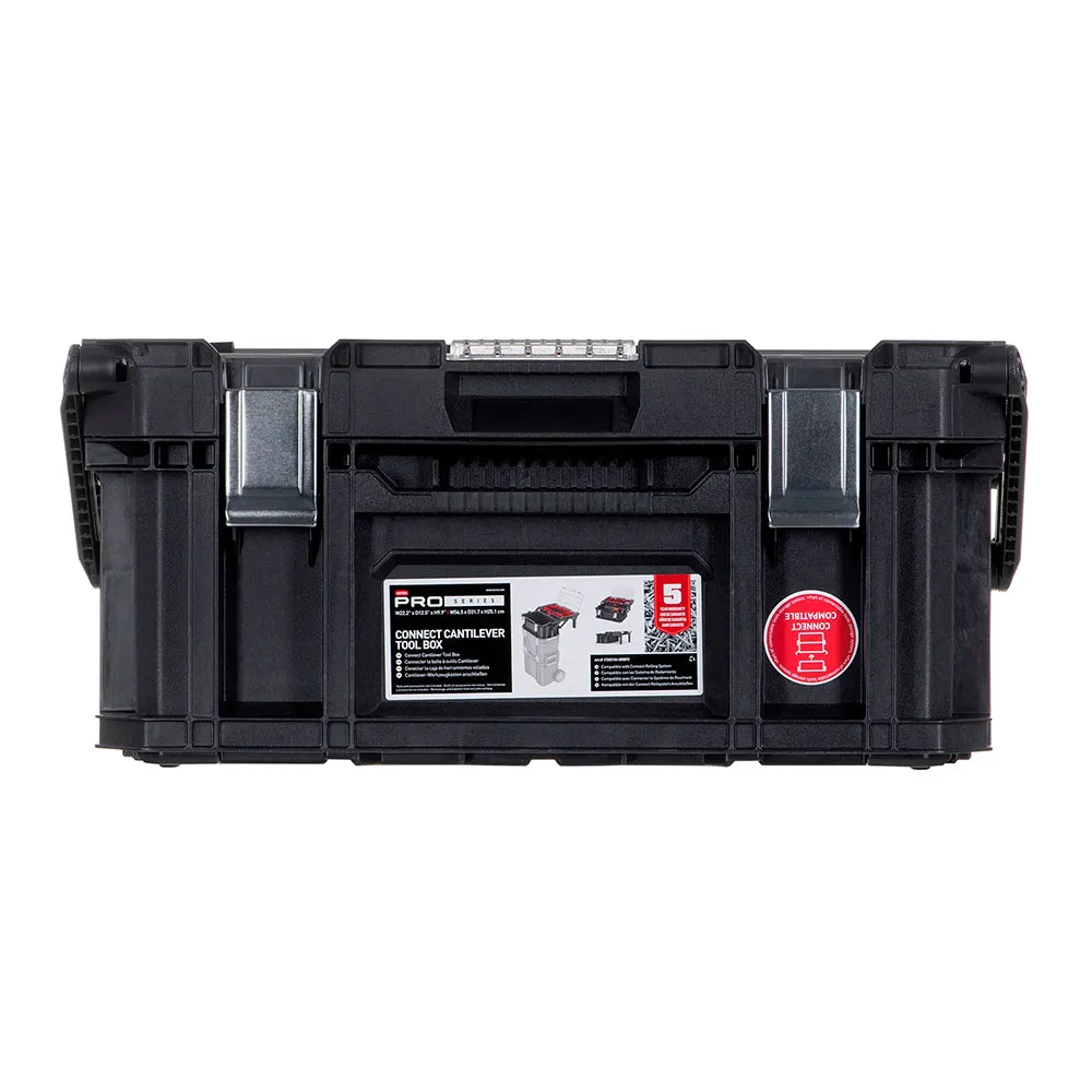 More than just a single toolbox, the Connect Cantilever 22 is a cornerstone of the Keter Connect modular storage system. It is fully compatible with other units in the Connect series, allowing you to stack, lock, and build a personalized mobile tool trolley that grows with your collection. Securely click it onto the Connect Rolling System or another Connect organizer to create a comprehensive, all-in-one solution that you can easily transport from your vehicle to the work area.