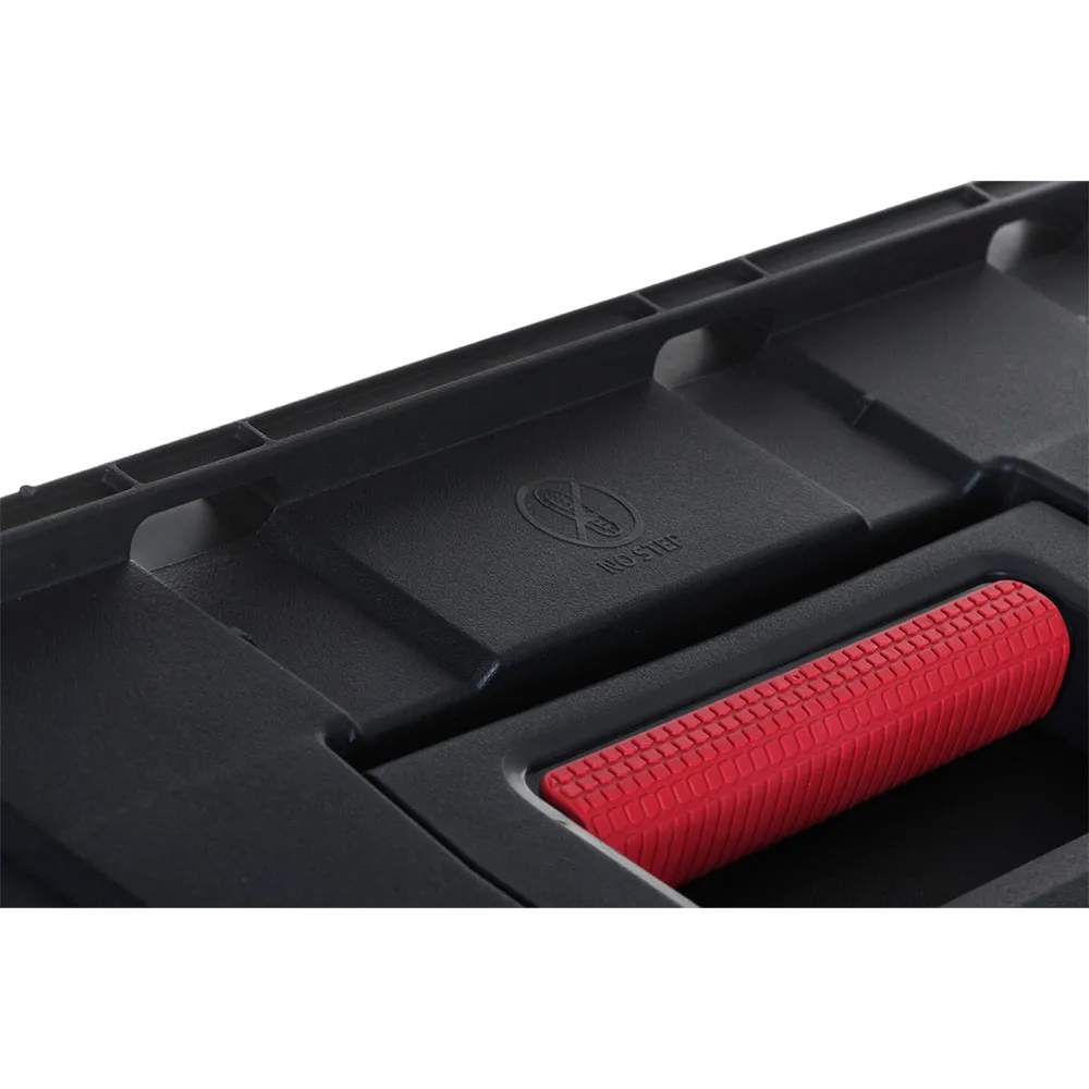 Mobility is at the core of the Stack ´n´ Roll design. Navigate busy job sites, workshop floors, and uneven terrain with ease thanks to the large 7-inch, heavy-duty wheels and a comfortable, ergonomic telescoping handle. The handle retracts smoothly for compact storage in your vehicle or garage. This rolling base unit transforms a heavy, cumbersome tool collection into a nimble and easily maneuverable cart, protecting your back from strain and making transport from your truck to the worksite a seamless experience.