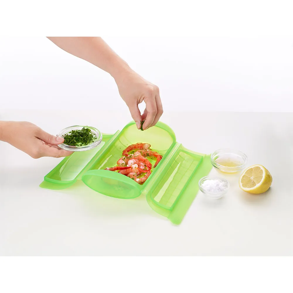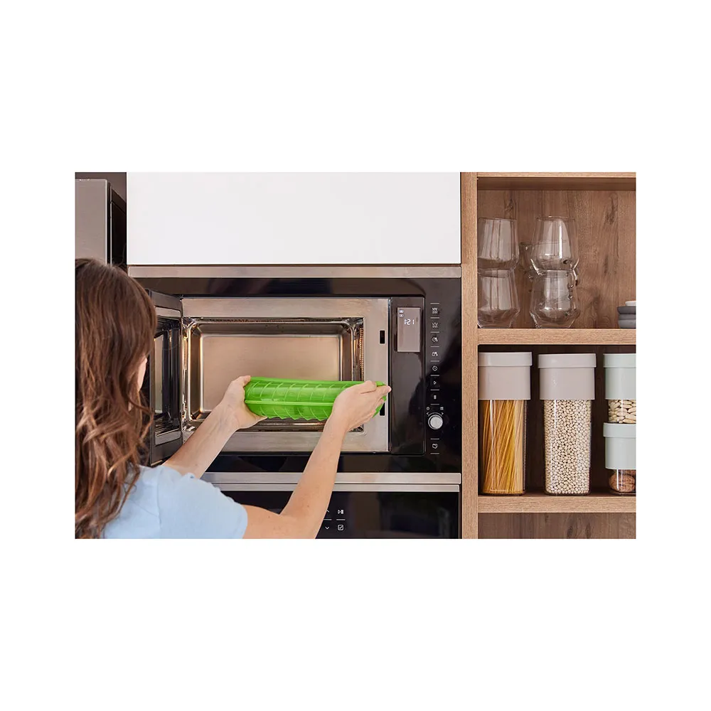 Microwave Steam Cooker made of 100% Silicone, for quick and easy cooking of vegetables and fish in just minutes.