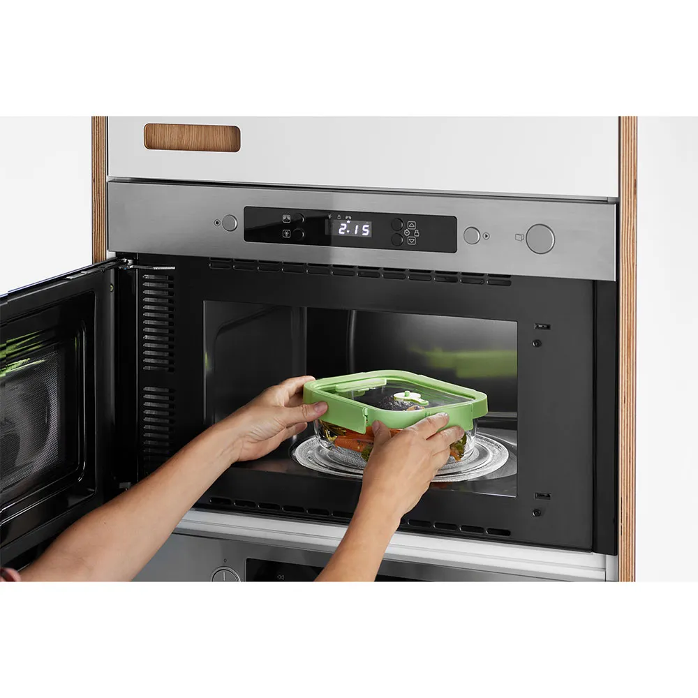 The LÉKUÉ Glass Lunch Box is engineered to seamlessly transition through every stage of your meal´s journey. Prepare your favorite dishes and store them in the freezer, ready for the week ahead. When it´s time to eat, you can transfer the container directly to the oven (without the lid) for baking or roasting, or place it in the microwave for quick and even reheating. The innovative lid features an exclusive valve that allows steam to escape during microwaving, preventing pressure build-up and messy splatters while ensuring your food remains moist and delicious. Serve your meal directly from the elegant glass dish, reducing the number of dishes you need to wash.