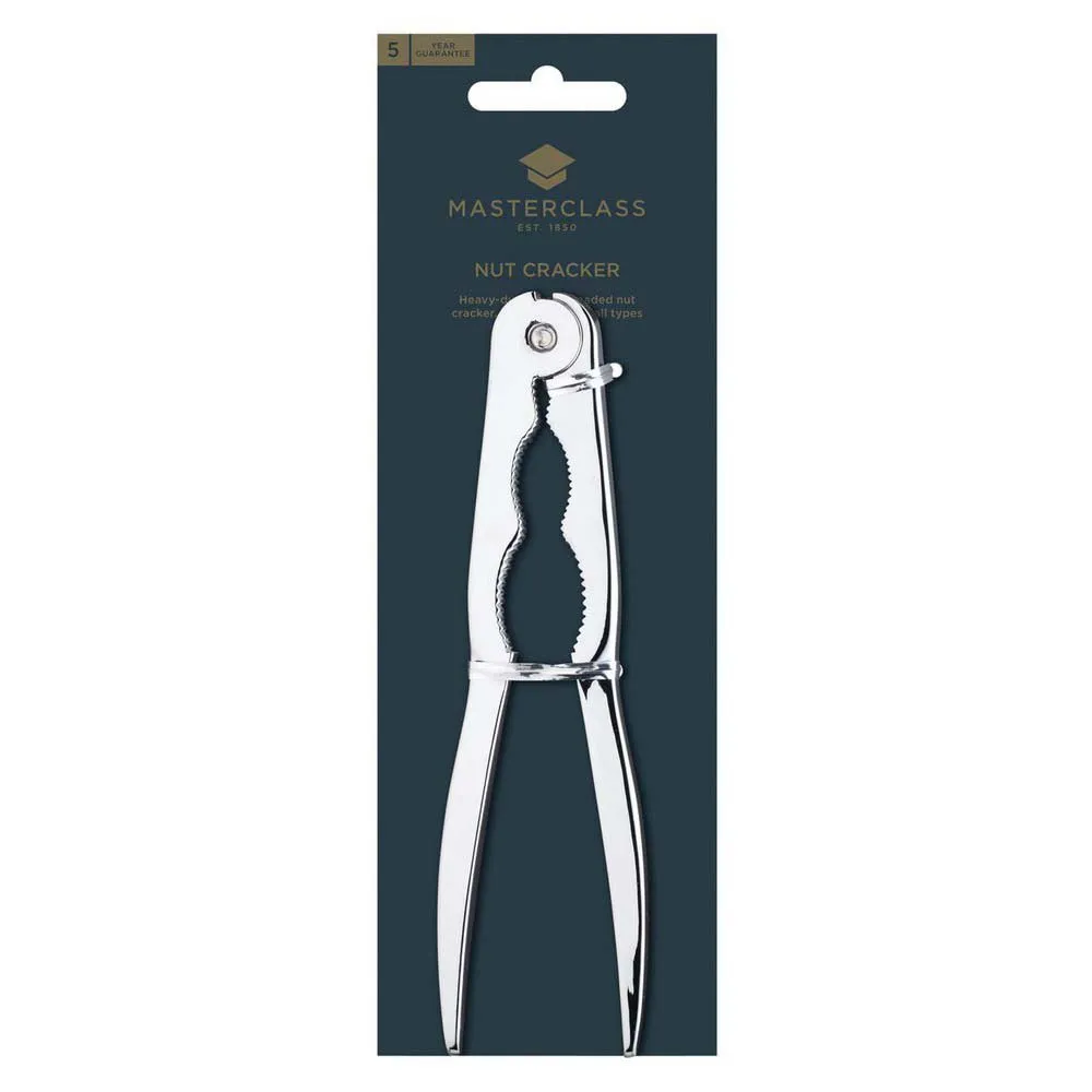 Crack the toughest of nuts with the MasterClass Deluxe Stainless Steel Nutcracker. With its heavy duty construction and spring-loaded mechanism it only takes a quick squeeze to break open Brazils, walnuts and other strong-shelled nuts. It measures 17 cm (6½”), so it provides plenty of leverage for easier nut cracking.