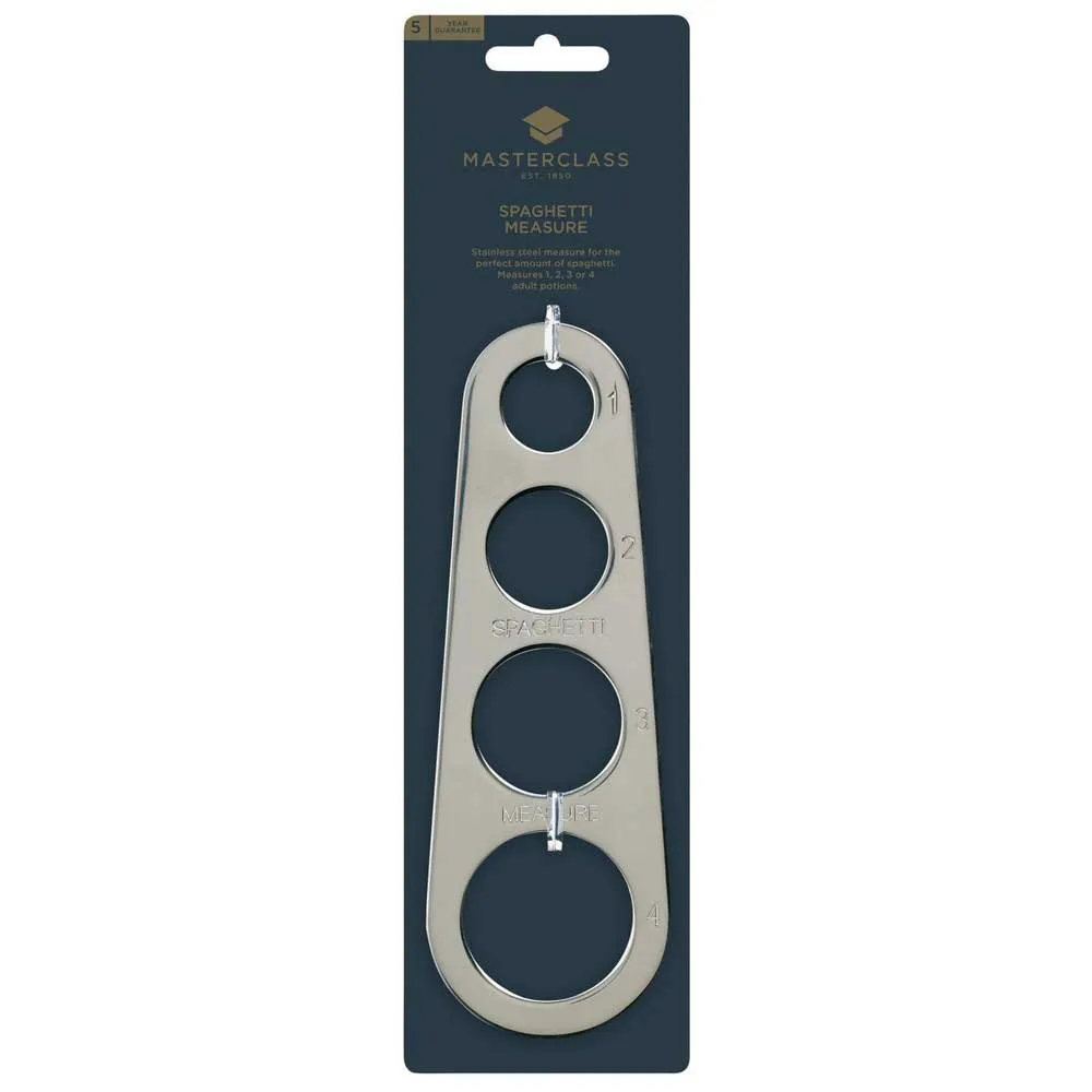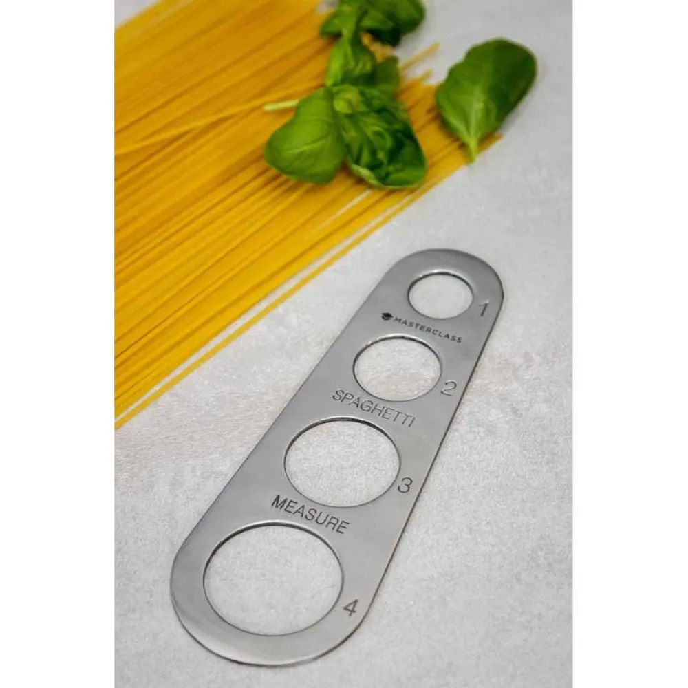 Spaghetti is a notoriously fiddly food when it comes to measuring portions. If you’re always cooking too much or too little, then you’ll love the MasterClass Stainless Steel Spaghetti Measurer. It’s a really helpful kitchen gadget, and it could even help you save money and waste less food by making your spaghetti go further. Measures Up to Four Adult Portions This durable little tool is made of high-grade polished stainless steel and features four measuring holes. These are designed to measure one, two, three or four adult portions, so it’s really useful whether you’re cooking a snack for one, or a big family meal. The holes are clearly marked to show portion sizes. Stylish, Sturdy and Stain Resistant With its beautiful polished finish, this pasta measure has a classic stylish look that suits any kitchen. And because it’s made of high-quality stainless steel, it will last and last. Plus, it’s a naturally tarnish-resistant material, so it’s easy to clean too. Useful Information — Dishwasher safe Measures 8 cm (3´´) wide Five year guarantee About MasterClass MasterClass is dedicated to making the exceptional achievable on a daily basis. The premium kitchen collection includes more than 600 deluxe kitchen tools, gadgets, knives and accessories, as well as its award-winning bakeware ranges.