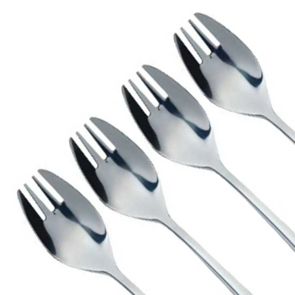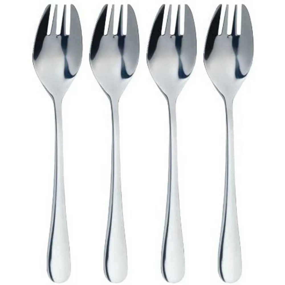 A convenient and versatile bottle for seasoning all kinds of food with its trio of interchangeable heads, this MasterClass Barbecue Bottle Set is a must-have for every barbecue enthusiast. From pouring oils, vinegar, dressings, and BBQ sauce to drizzling dessert toppings and syrups, this multi-functional bottle does it all. The BPA-free plastic barbecue bottle comes equipped with three heads, each designed to cater to ‘Spife’ ‘Sporf’ Or, as the Finns say, lusikkahaarukka? Whatever you call it, this handy utensil is a lifesaver for parties, buffets and those ‘grab-a-snack’ moments. It’s a clever combination of knife, fork and spoon in one elegant utensil! This pack includes four MasterClass buffet forks, made of high-quality stainless steel, with a beautiful mirror-polished finish. A brilliant blend of sophisticated style and reliable durability, they’re strong for every day, and elegant enough to impress at dinner parties. The forks feature a curved bowl, complete with four tines and a serrated knife-like edge. This makes them extremely versatile and reduces the need for multiple pieces of cutlery. Useful Information Set includes 4 buffet forks Each fork measures 16.5 cm (6½´´) Stainless steel is naturally resistant to rusting and tarnishing — Dishwasher safe Covered by a 5 year MasterClass guarantee. The MasterClass Cutlery Collection The MasterClass collection features lots of high-quality stainless steel cutlery that’s designed to impress on every occasion. Whether you´re sitting to enjoy dinner with family or playing host to a special dinner party with friends. These buffet forks are ideal for parties, as well as picnics, barbeques and buffets. However, for those sit-down meals, why not try the Stainless Steel Dinner Knife and Fork Set.
