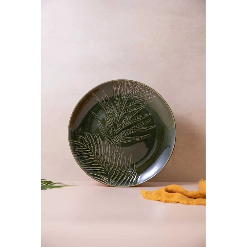 Where botanical elements and statement design combine, the Mikasa Jardin Round Serving Platter is destined to impress your guests. Part of a collection inspired to bring the outdoors inside, this stoneware serving platter is finished in an eye-catching green glaze with debossed organic detailing. Versatile to the core, this round serving dish is perfect for everyday dining, special occasions, and alfresco meals. Whether you’re piling it with grilled seafood or a sumptuous burrata salad, it´s bound to make a stylish impression against a white backdrop. It´s microwave and dishwasher safe for easy cleanup and even comes with a 10-year guarantee. Each dining piece in Mikasa’s Jardin collection is subtly different, adding to the uniqueness of the range. Explore the rest of the edit for matching plates, pasta bowls and more.