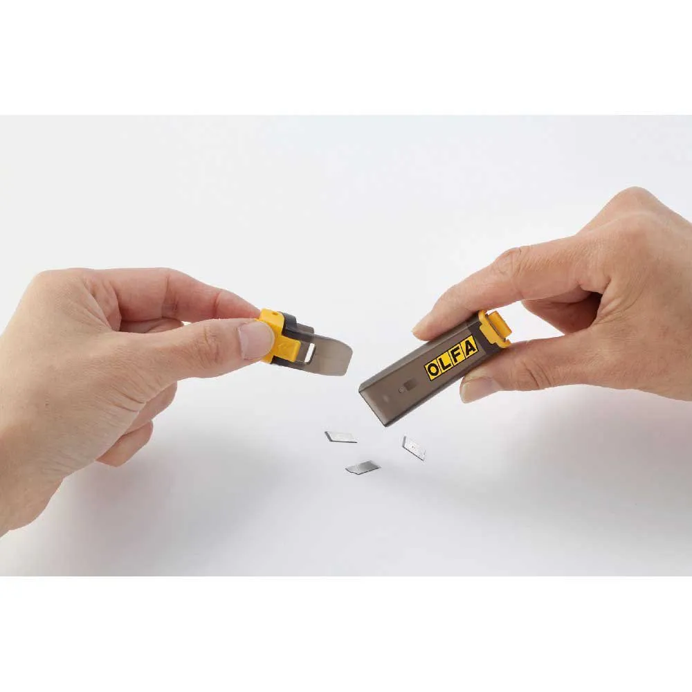 OLFA has incorporated a detachable Disposal Case that makes it easier and safer to snap off and dispose of used blades into a small Auto-Lock Cutter used widely at home and the office. It greatly reduces the hassles of snapping off blades and enchances to a maximum the advantages of the replaceable blade system that gives users the sharpness they need at all times. This easy-to-use 9mm Auto-Lock Cutter with easy handy blade disposal can be used by both left-handed and right-handed users.