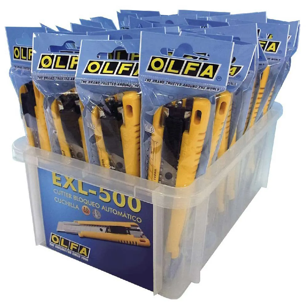 This EXL-500/40 package is specifically designed for retailers and large-scale operations. The 40 cutters are presented in a sturdy, eye-catching display box that is perfect for placement on a sales counter, shelf, or linear display. It provides an excellent value proposition for businesses looking to equip their entire team with a high-quality, standardized cutting tool or for retailers aiming to offer a trusted, high-demand product to their customers. Equip your workspace or stock your shelves with the industry standard for quality and performance. Choose the OLFA EXL-500 for a tool that delivers reliability, safety, and precision with every single cut