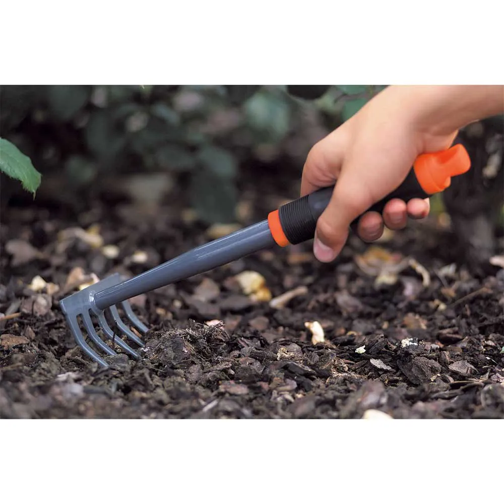 5-tine flat comb rake, ideal for light garden work collecting leaves, debris, levelling and loosening soil.
