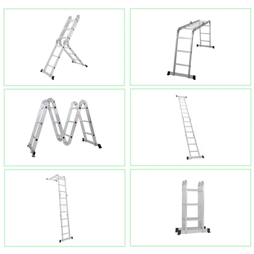Experimente lo último en adaptabilidad. Esta única pieza de equipo se transforma sin esfuerzo para satisfacer las demandas específicas de su proyecto. Configúrela como una robusta escalera de tijera en forma de A para un acceso estable y autónomo en el centro de una habitación. ¿Necesita más altura? Conviértala rápidamente en una escalera de extensión larga y recta para alcanzar techos altos, tejados o ventanas. Trabajar en superficies irregulares como escaleras ya no es un desafío; el diseño innovador permite configurarla como una escalera de escalera segura, proporcionando una plataforma nivelada y segura. Para proyectos más grandes que requieren un espacio de trabajo más amplio, incluso se puede configurar como un caballete o base de andamio confiable, brindándole una base sólida para trabajar.