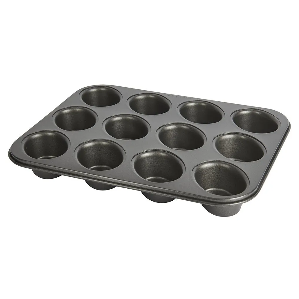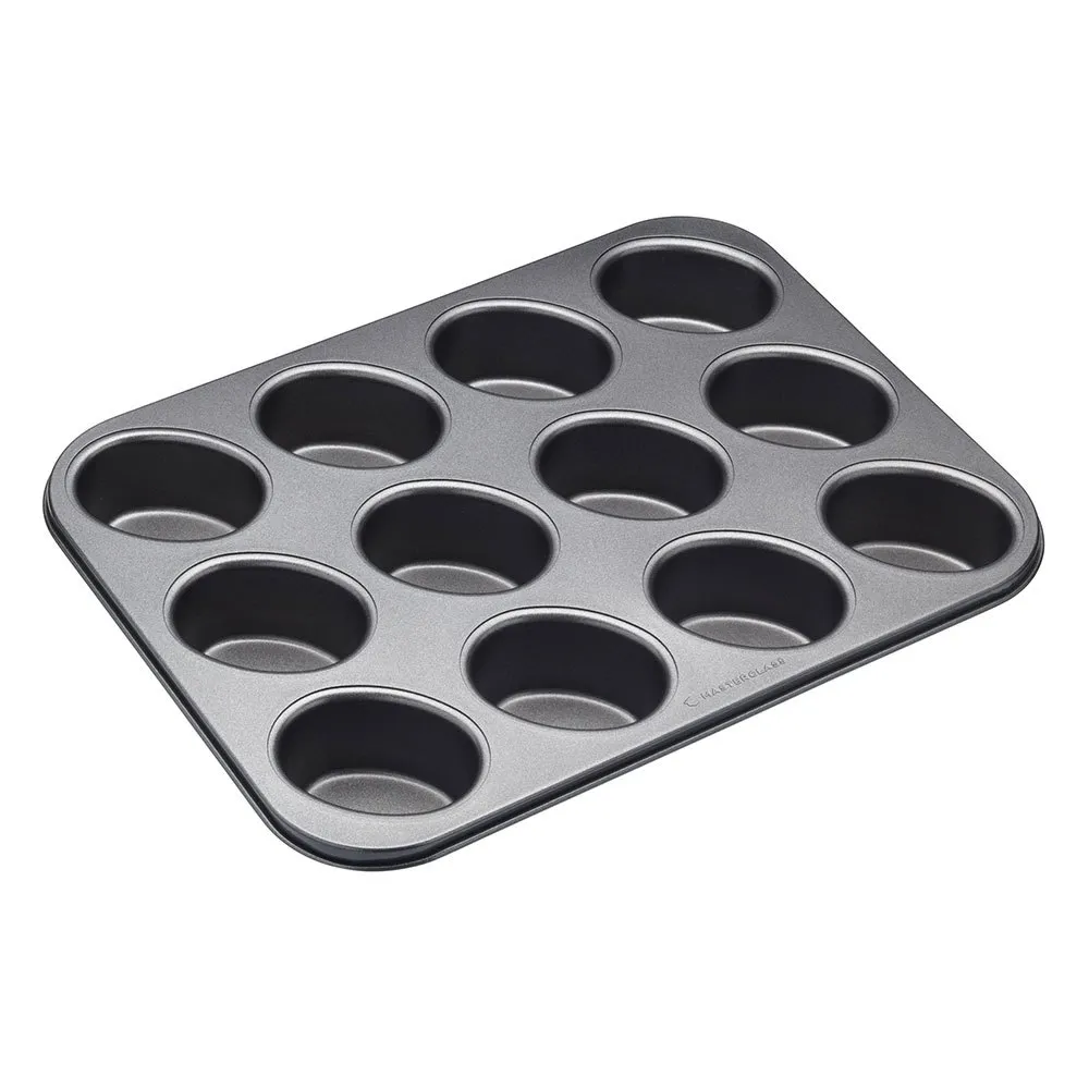 Este molde antiadherente de 12 agujeros MasterClass está hecho de acero al carbono de grado comercial y cuenta con un inteligente revestimiento antiadherente doble.